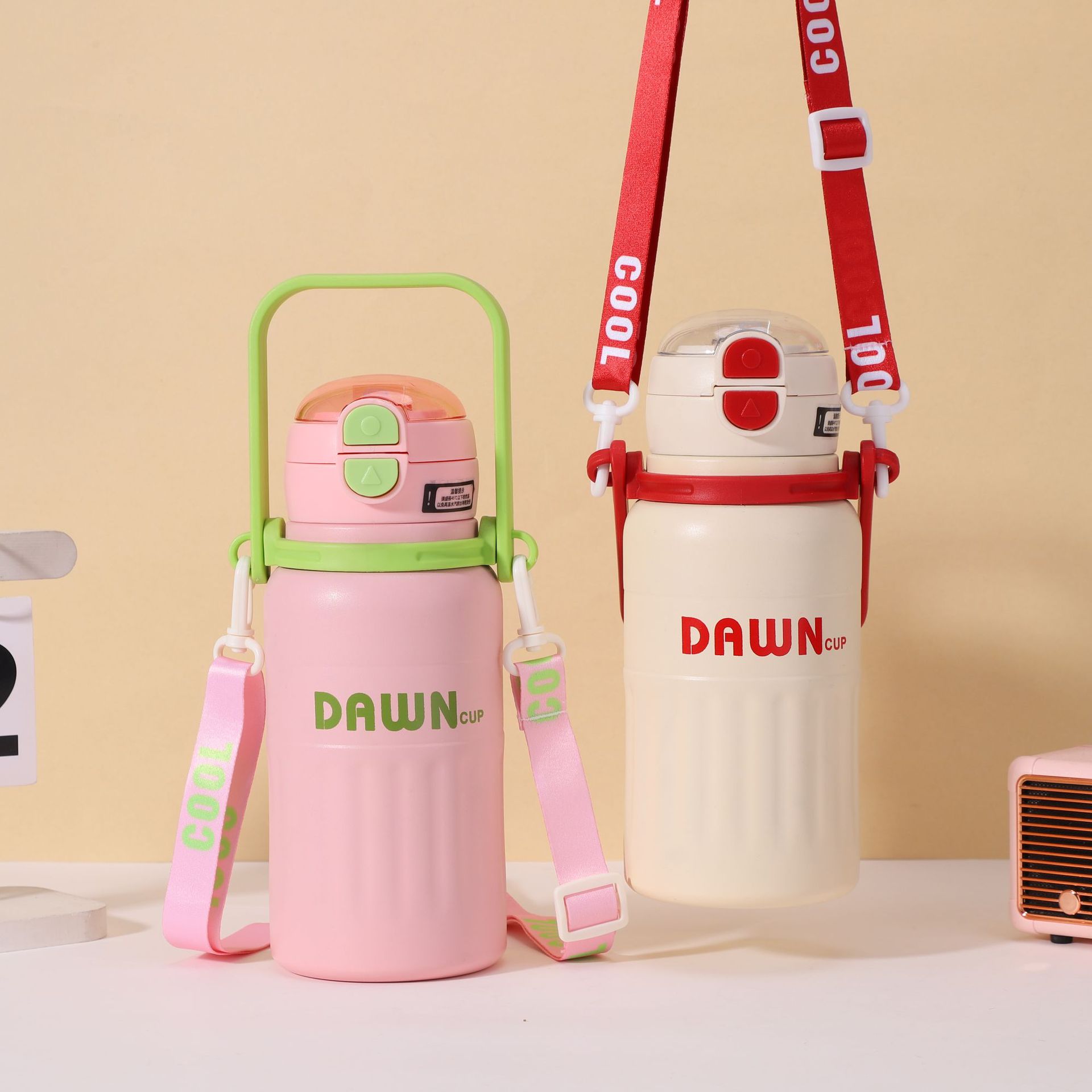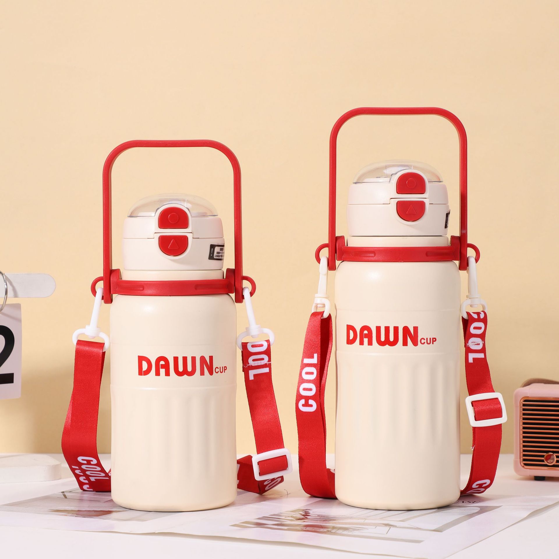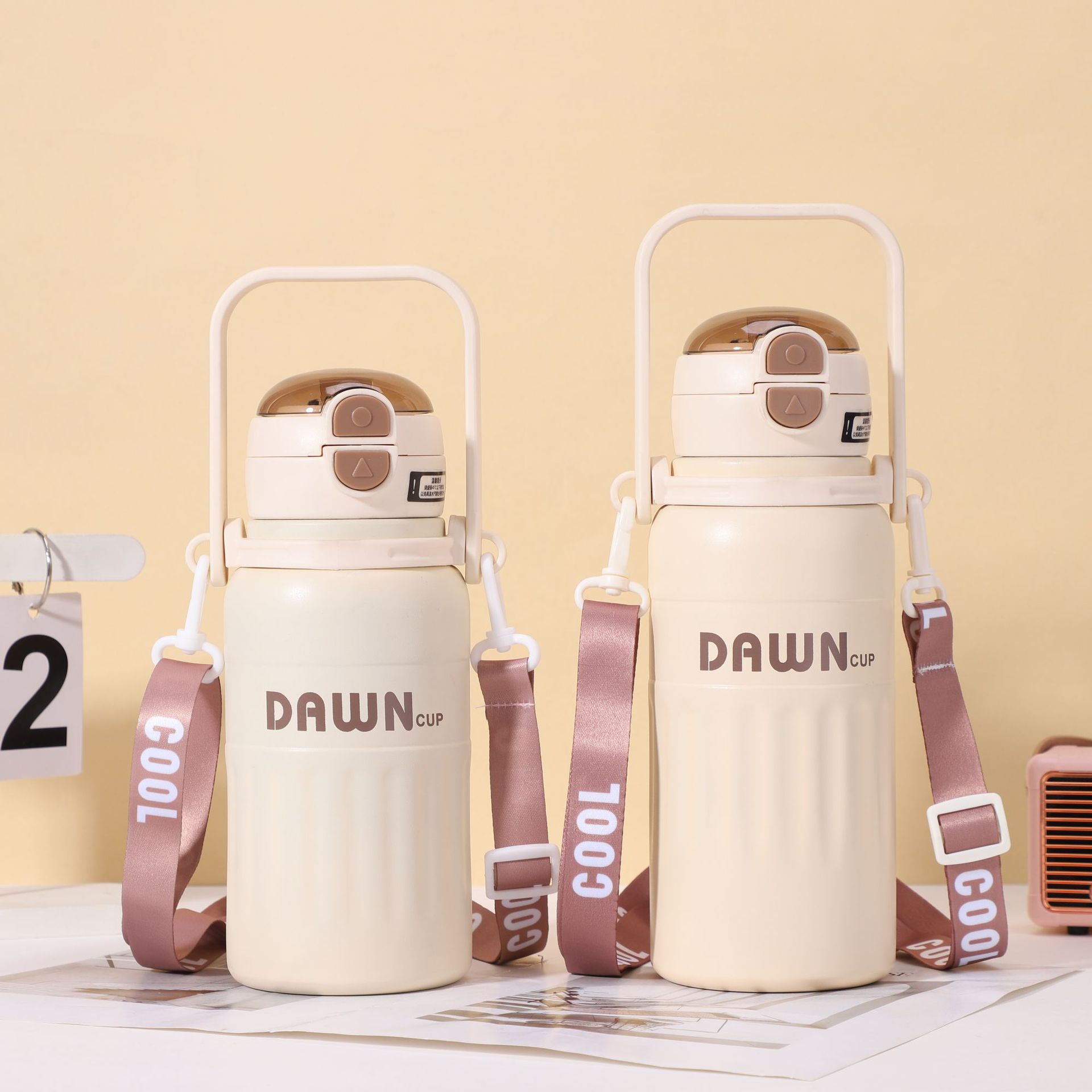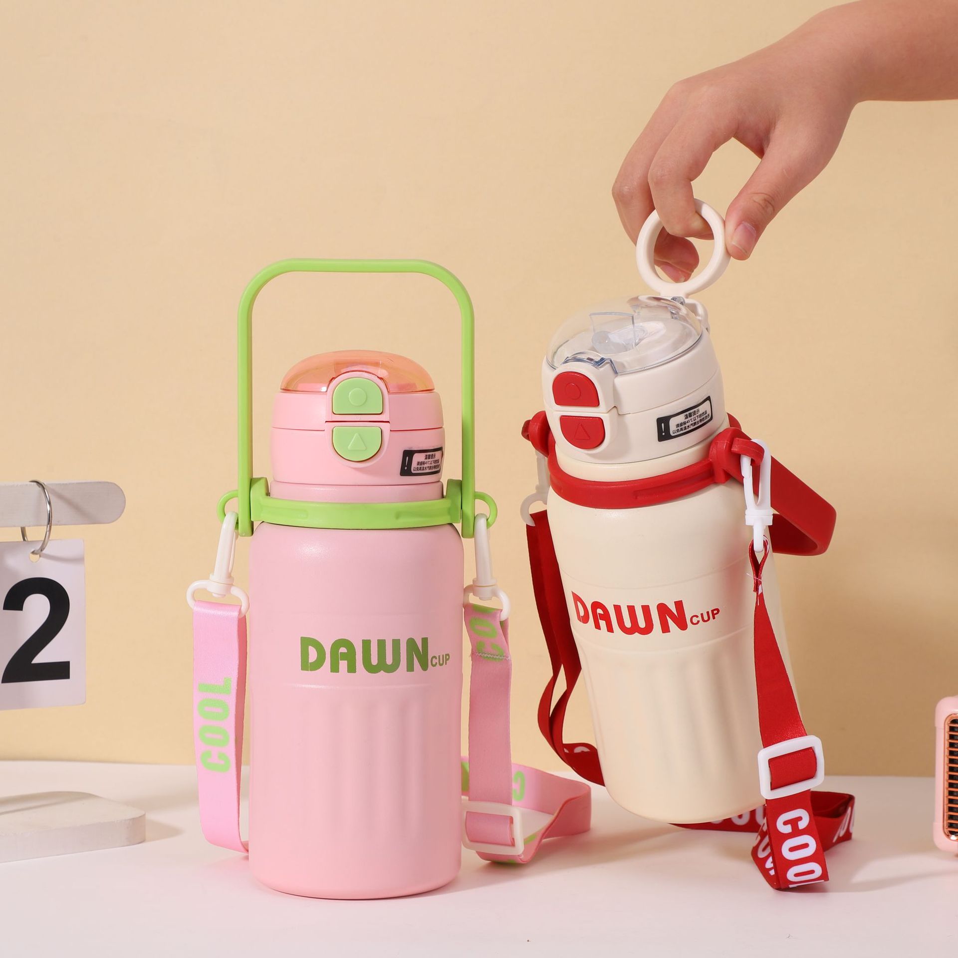 316 스테인레스 스틸 대용량 보온병 컵, 손잡이가 있는 고급스러운 휴대용 바운스 밀짚 컵, 야외 등산 주전자