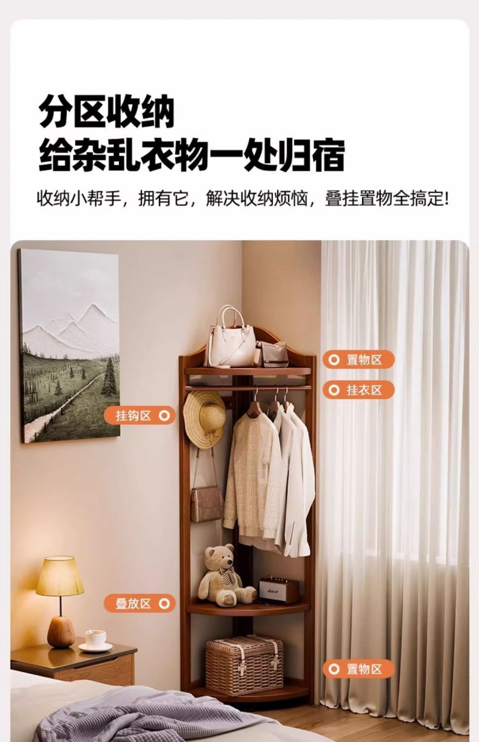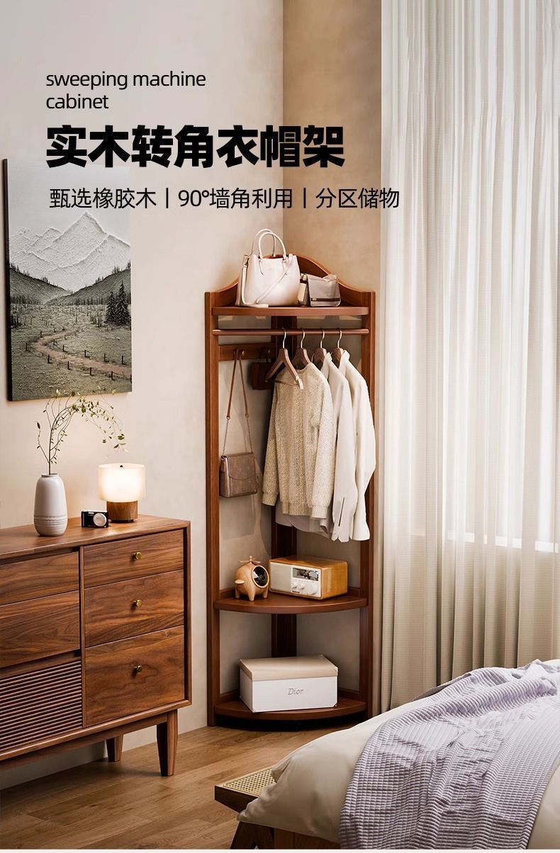 바닥걸이 옷걸이, 침실 옷걸이, 코너 옷걸이, 소형 가정용 실내 거실 원목 옷걸이