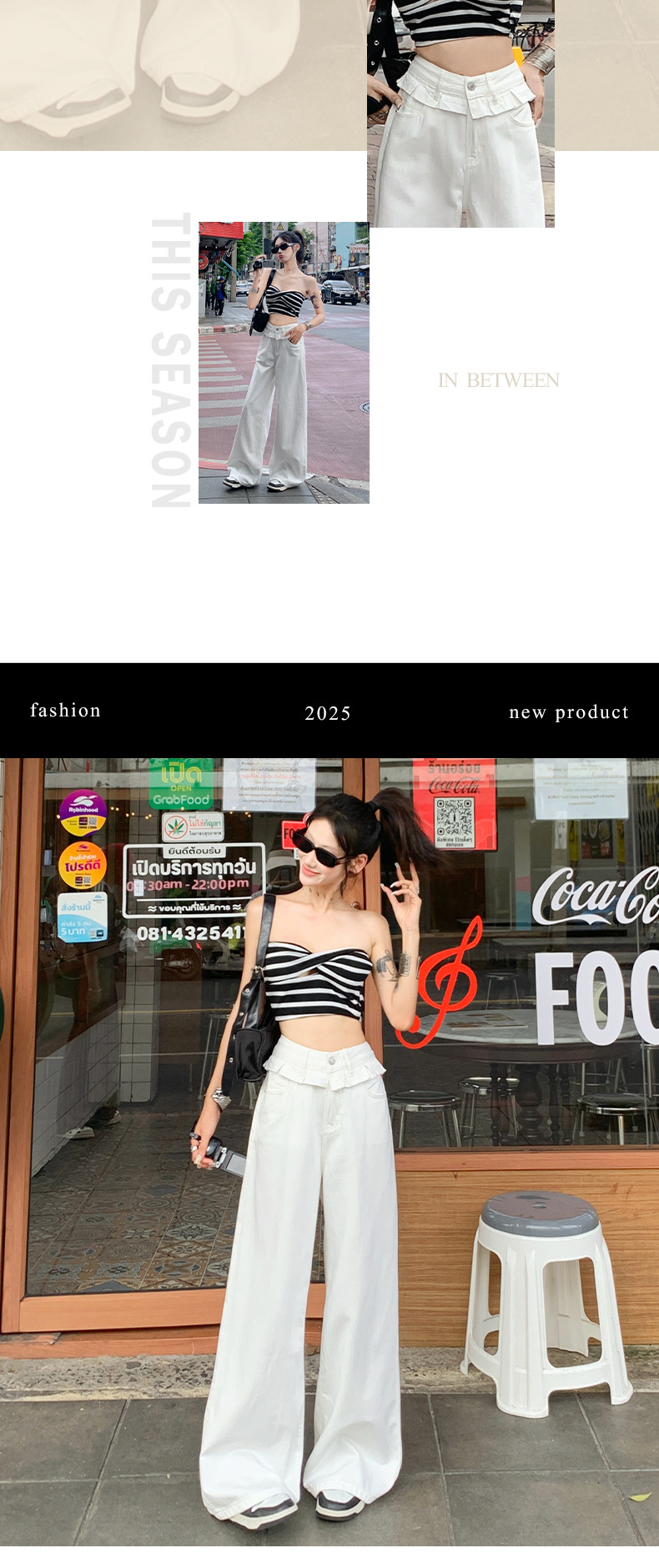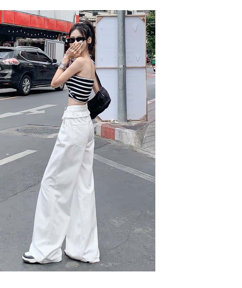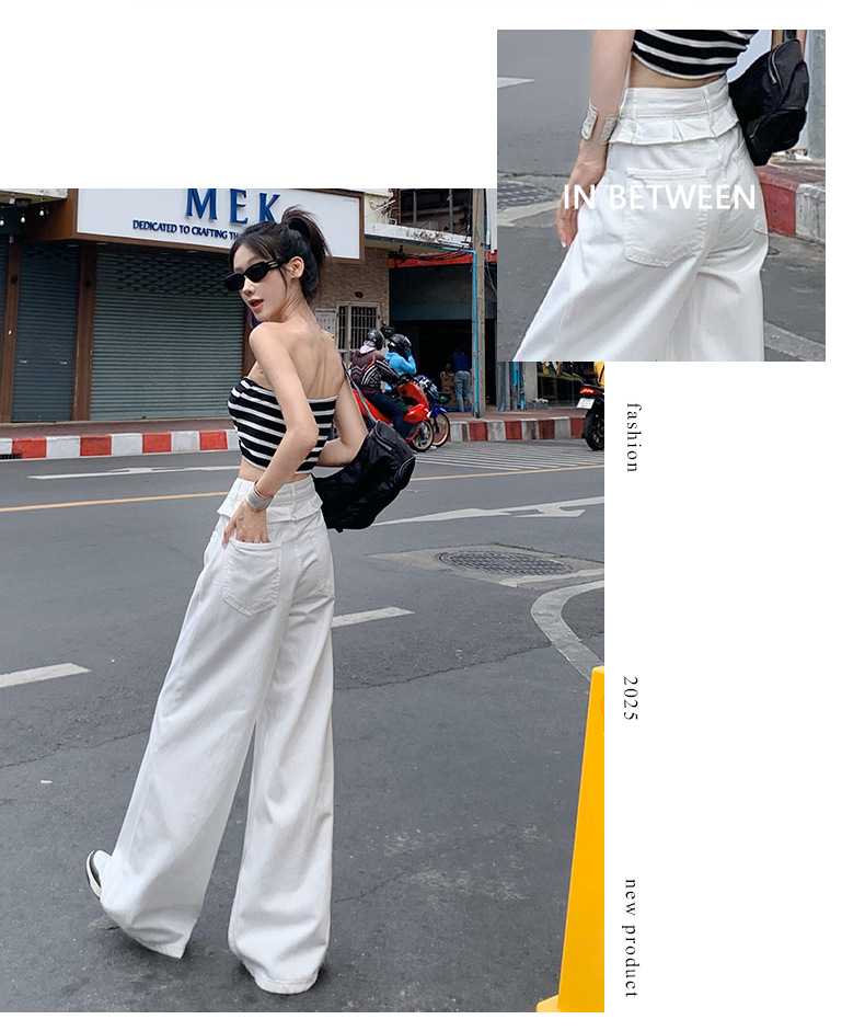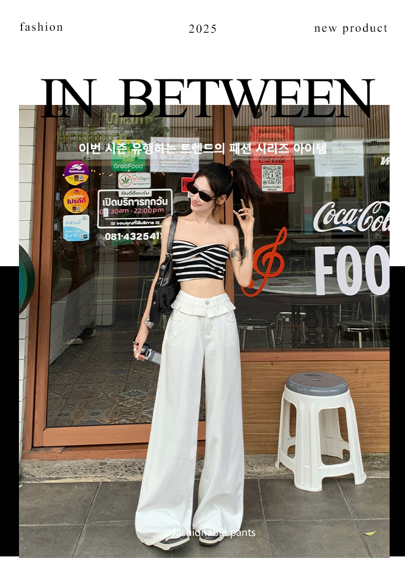 여름 여성용 화이트 레이스 스트레이트 청바지, 플리츠 디자인, 아메리칸 핫걸 루즈하고 드레이프한 와이드 팬츠스토어 가기