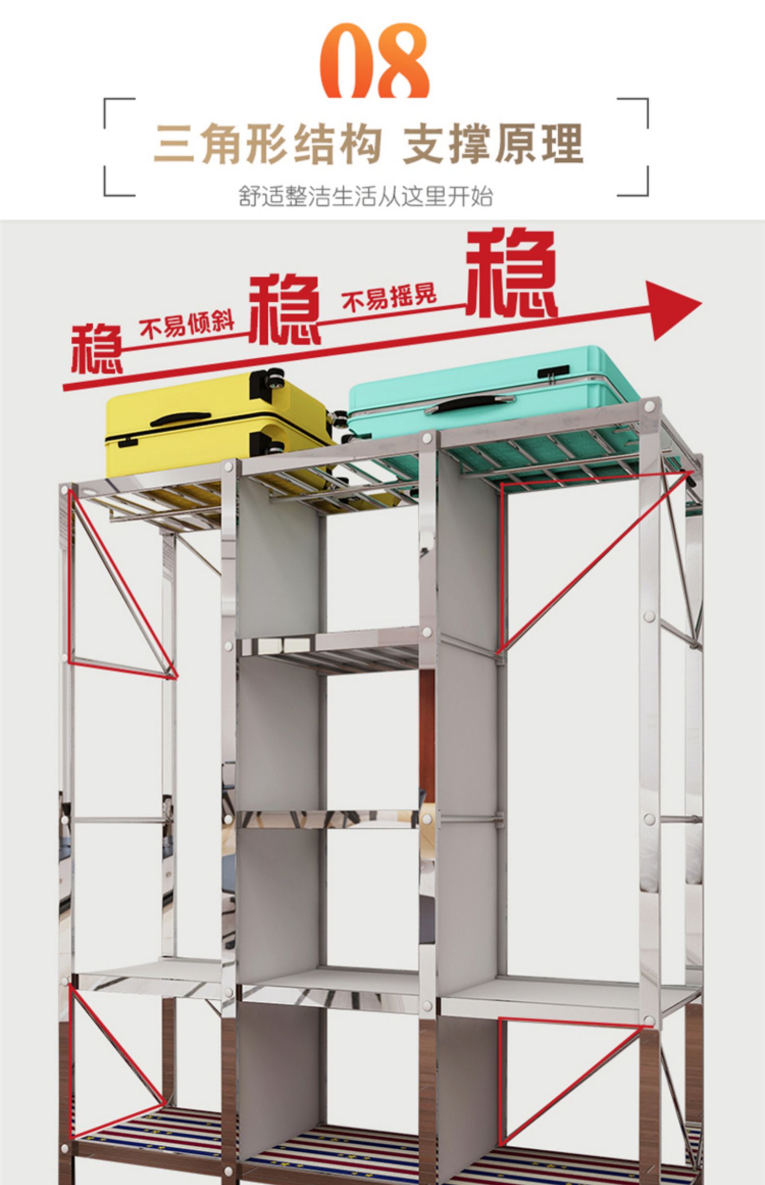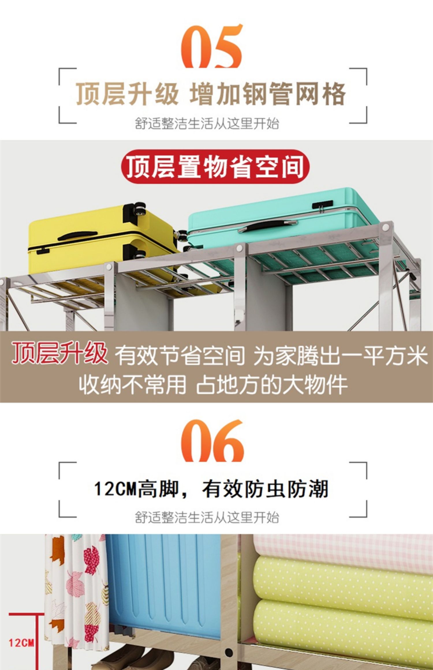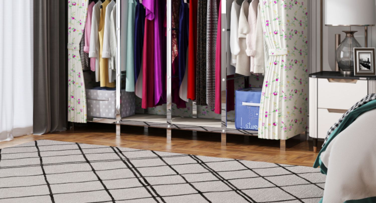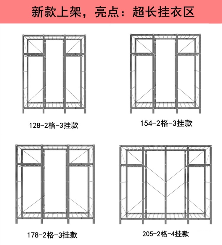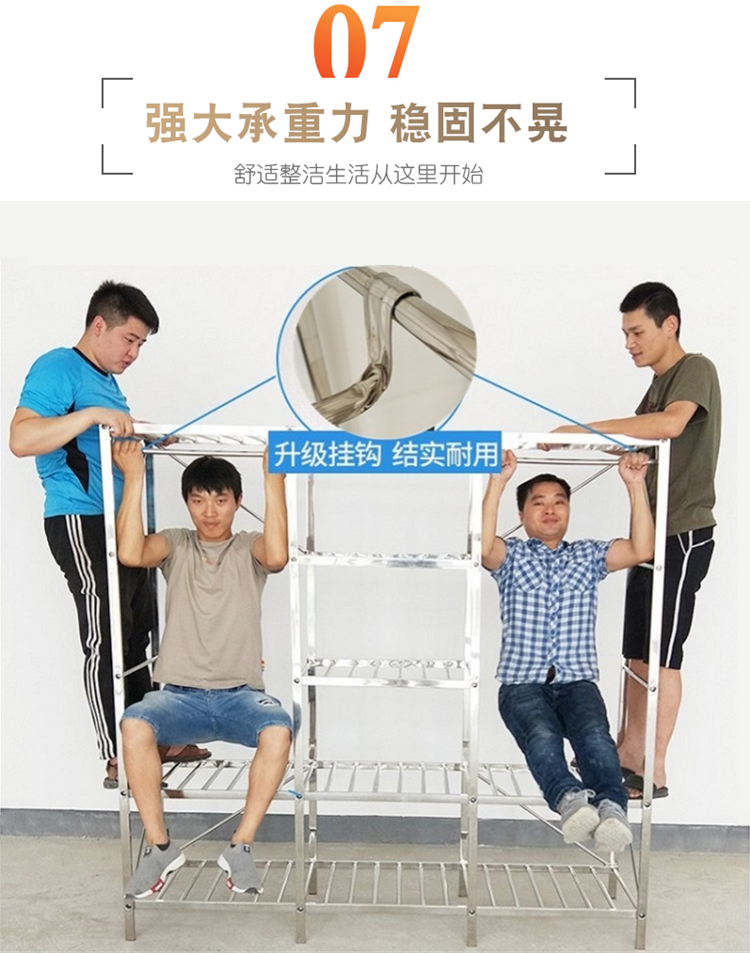 간단한 옷장 천 옷장 스테인레스 스틸 프레임 임대 주택 현대 두꺼운 강화 강철 파이프 조립 접이식 가정용스토어 가기