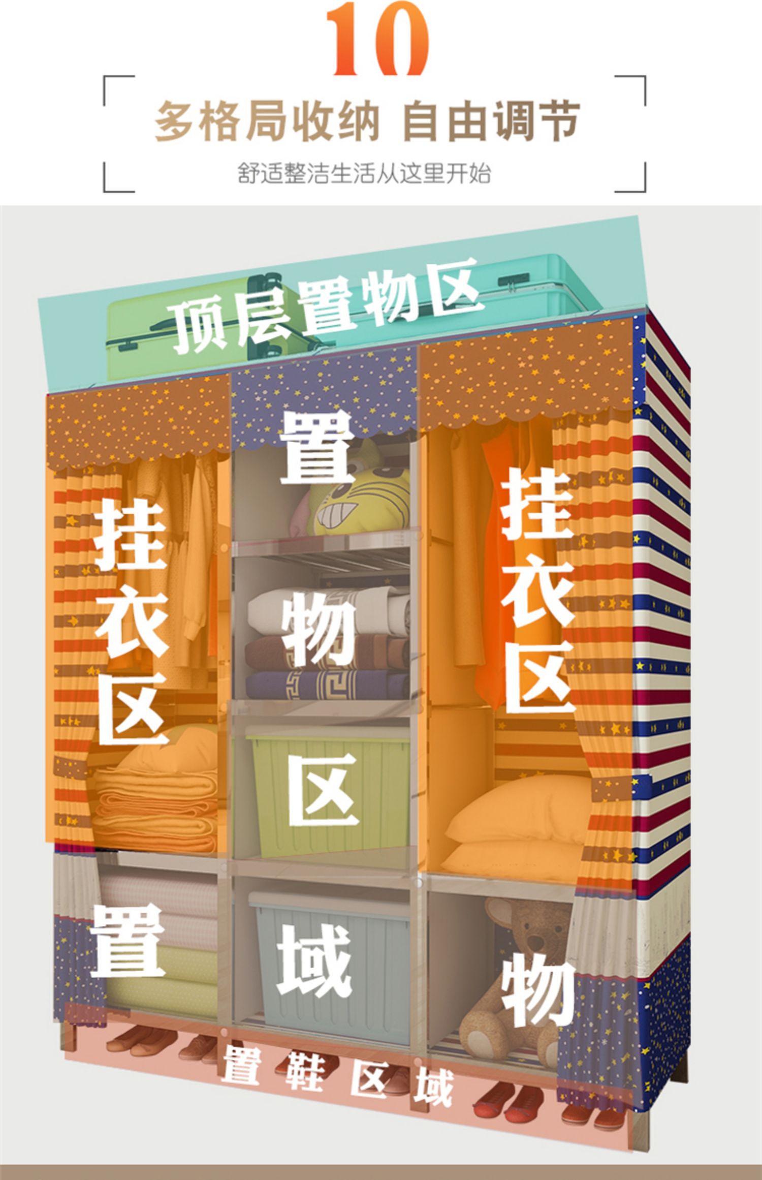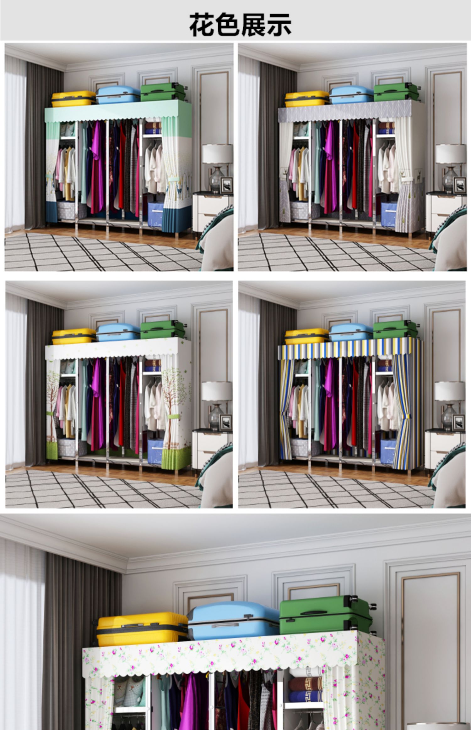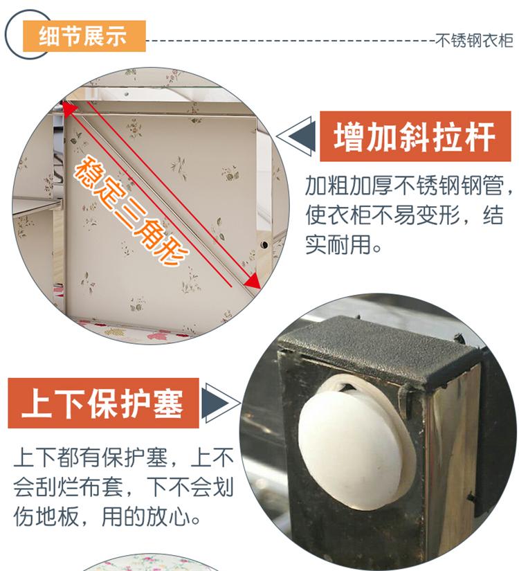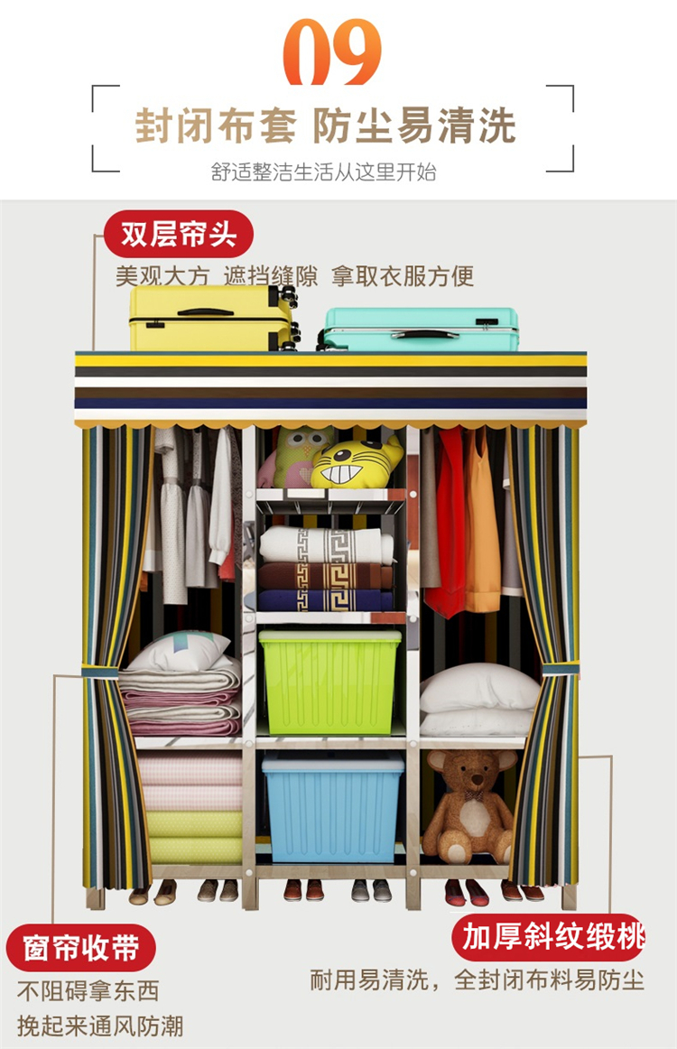 간단한 옷장 천 옷장 스테인레스 스틸 프레임 임대 주택 현대 두꺼운 강화 강철 파이프 조립 접이식 가정용