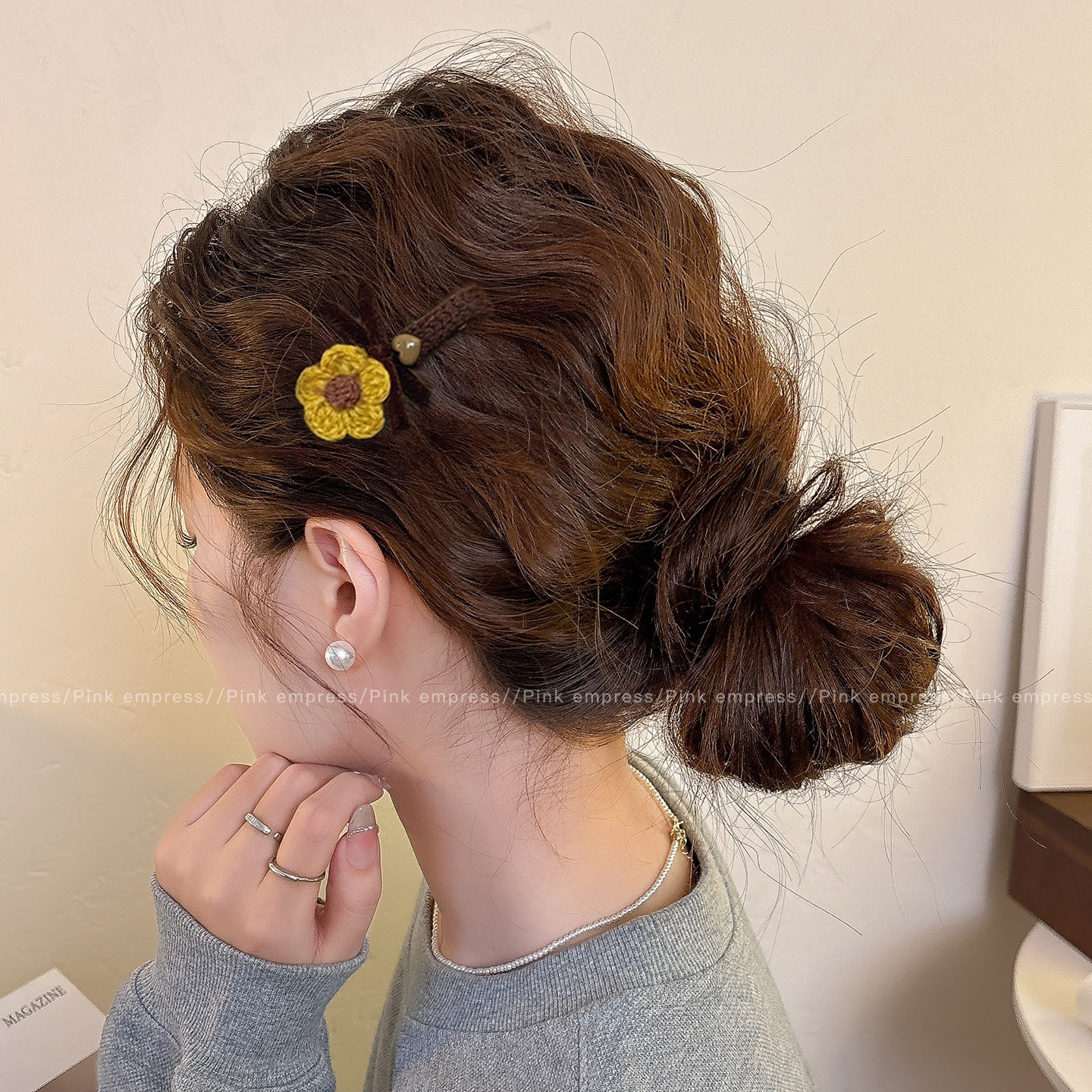 • 1#싱글팩 [노란꽃] 리본 머리핀, 길이 약 7.5cm