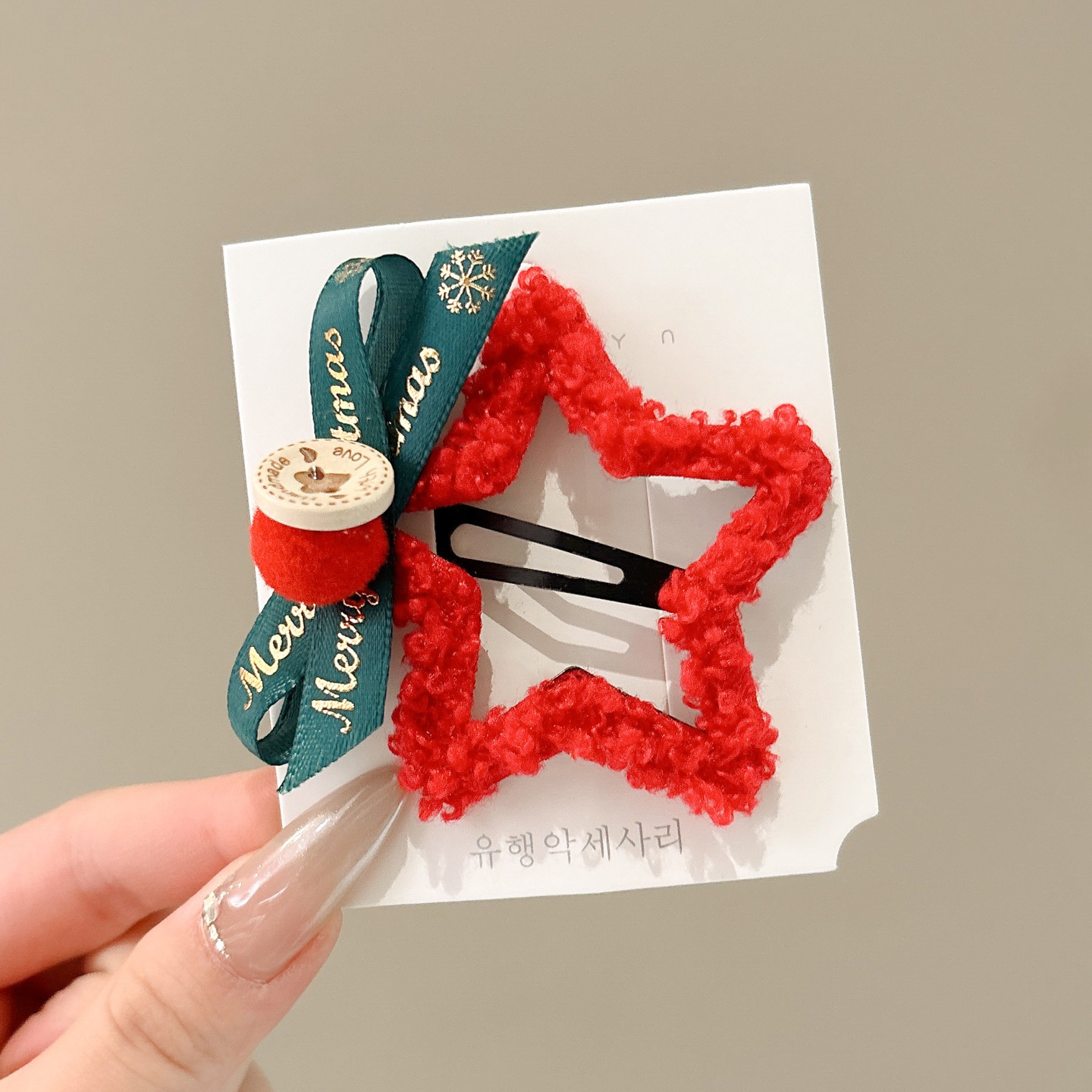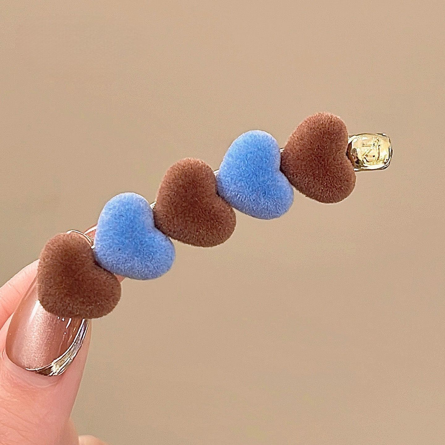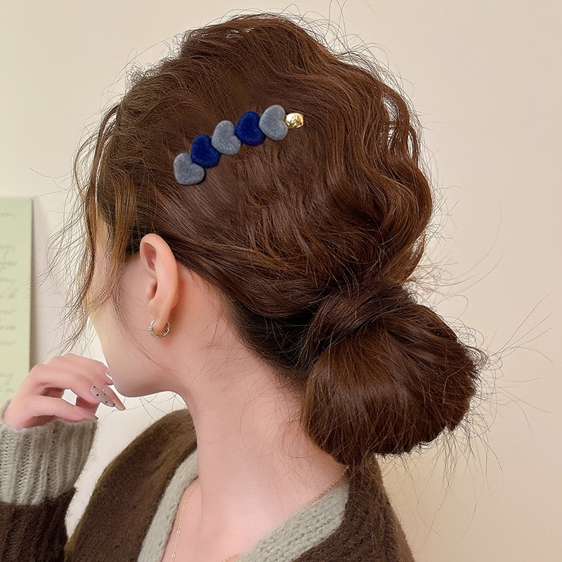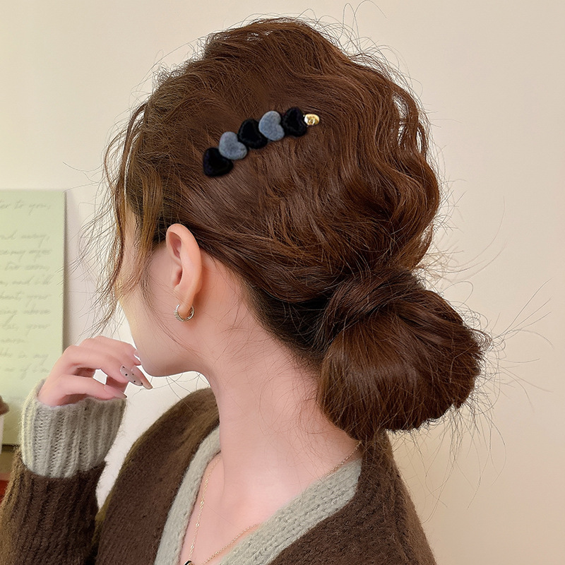 가을 겨울용 별 모양 털핀 여성용 옆머리 클립, 잔머리 정리용 일자형 덕빌 클립, 고급스러운 BB 클립 헤어 액세서리