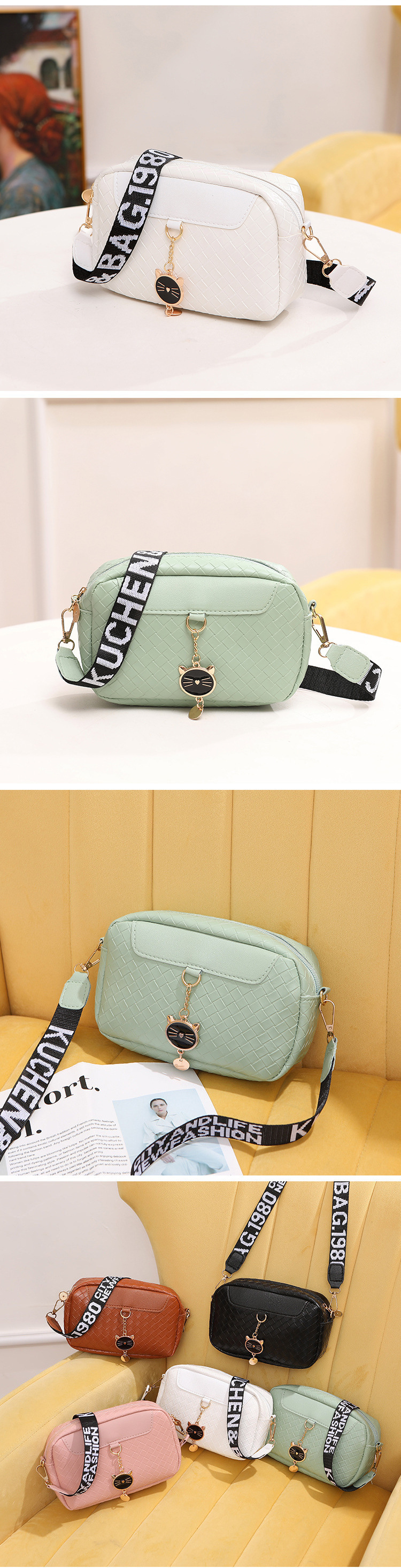 2025 신상 여성용 가방, 패셔너블한 주름진 쉘백, 숄더백, 크로스바디 체크무늬 고양이 머리 작은 가방, 원피스스토어 가기