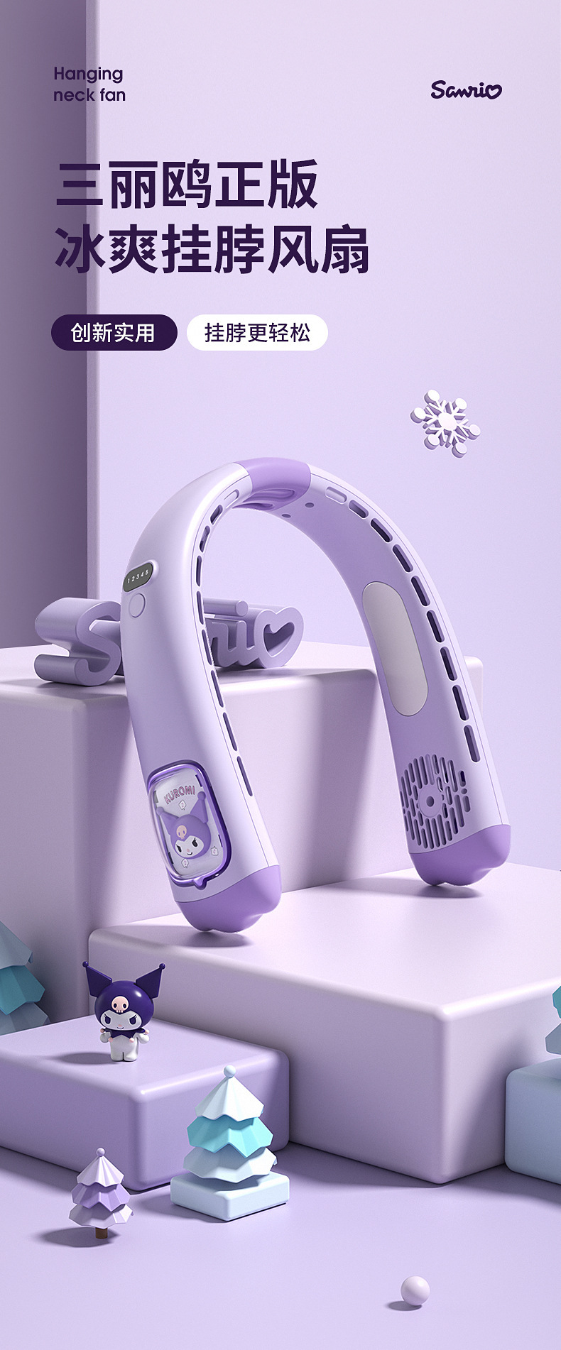 2025 새로운 Sanrio Leafless 홀터 팬 만화 미니 휴대용 홀터 팬 게으른 사람들을위한 USB 충전스토어 가기
