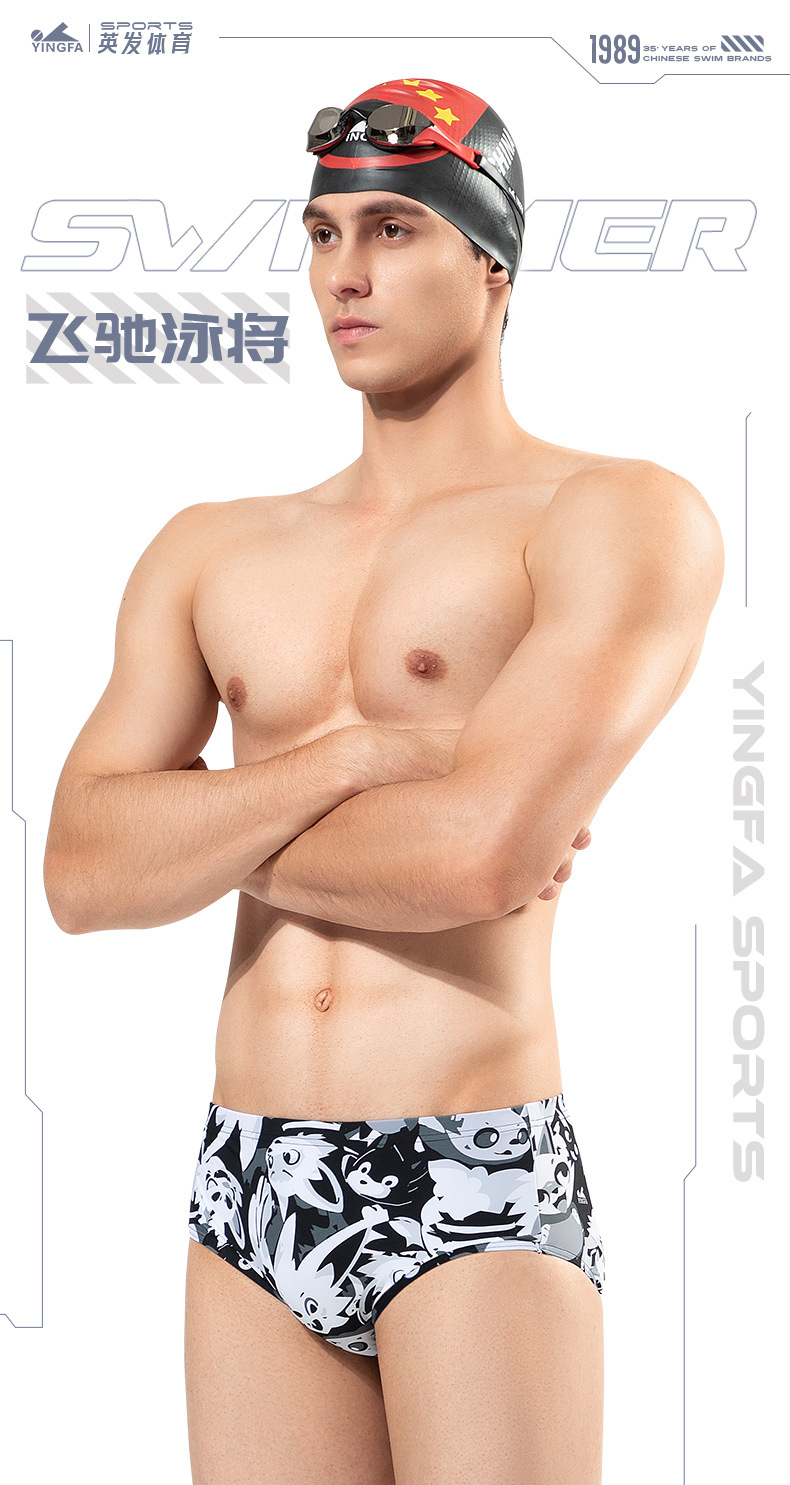 Yingfa Yingfa 2025 새로운 남성용 삼각 수영 트렁크 인쇄 고탄성 전문 스포츠 속건성 및 당황 방지