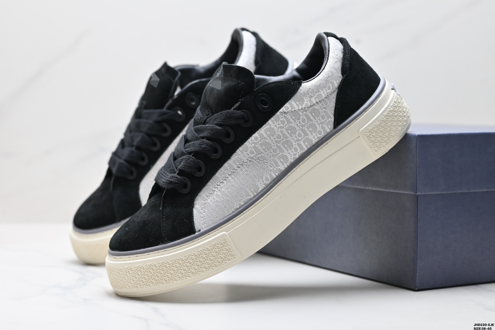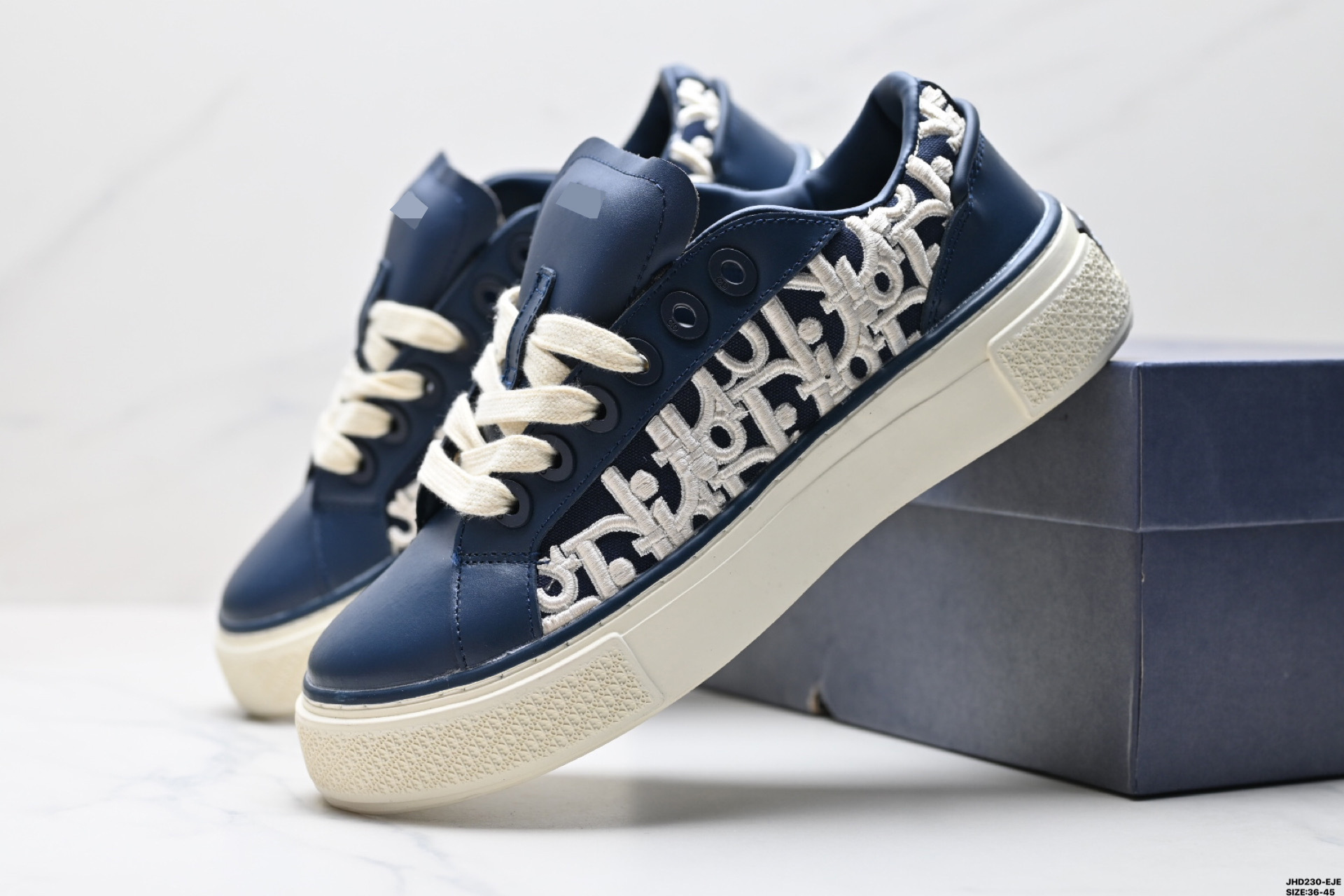 D의 레터 자수 레이스업 캐주얼 슈즈 b33 커플 스타일 천연가죽 두꺼운 밑창 흰색 신발 남녀공용 다용도 스포츠 스니커즈