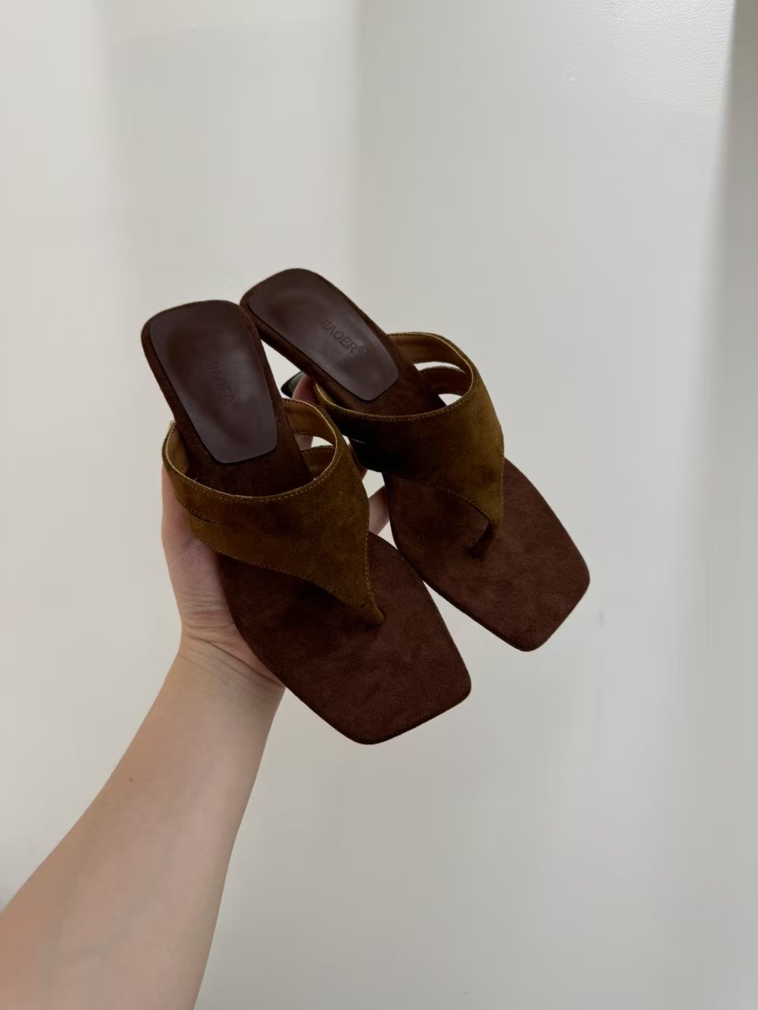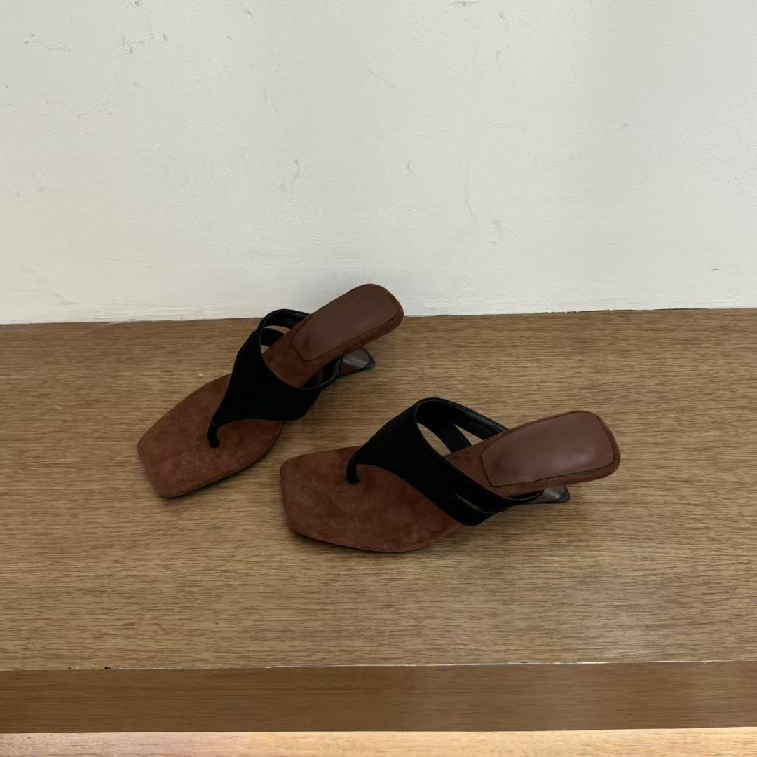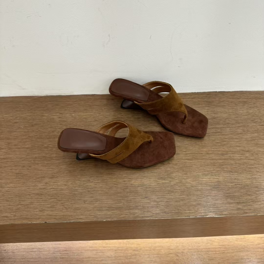 미라 핫걸! 레트로 스웨이드 플립 플롭 여성 여름 2025 여름 새 스타일 플립 플롭