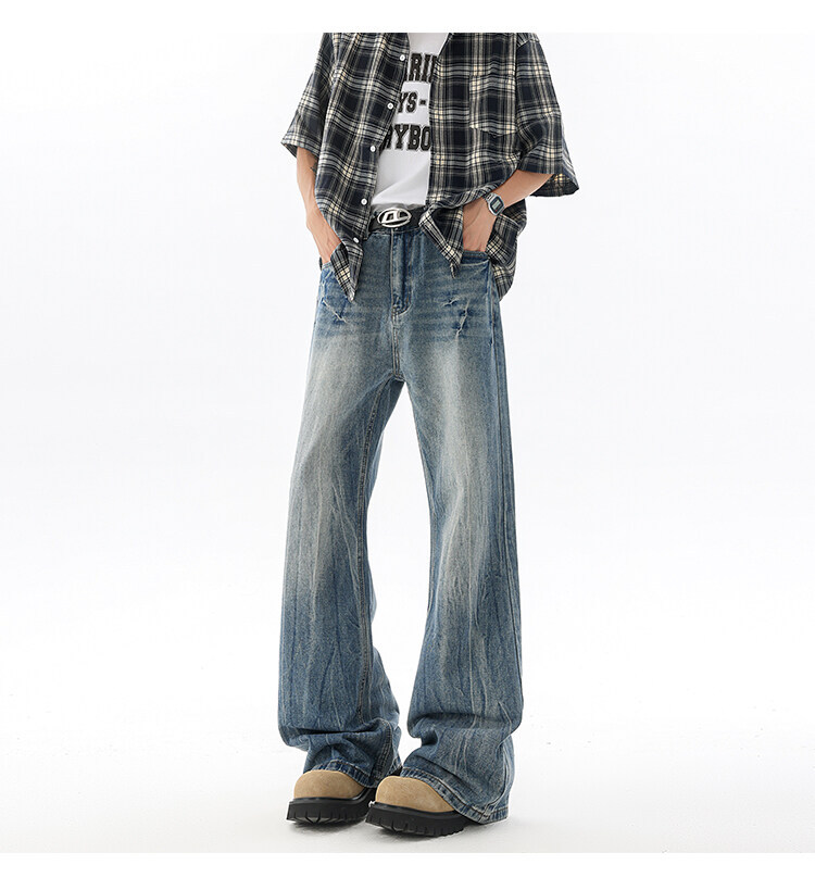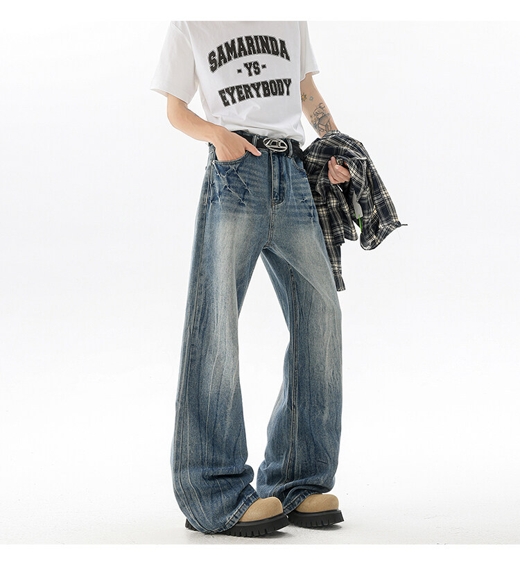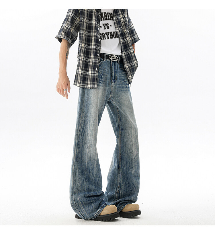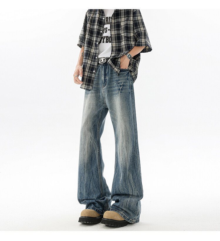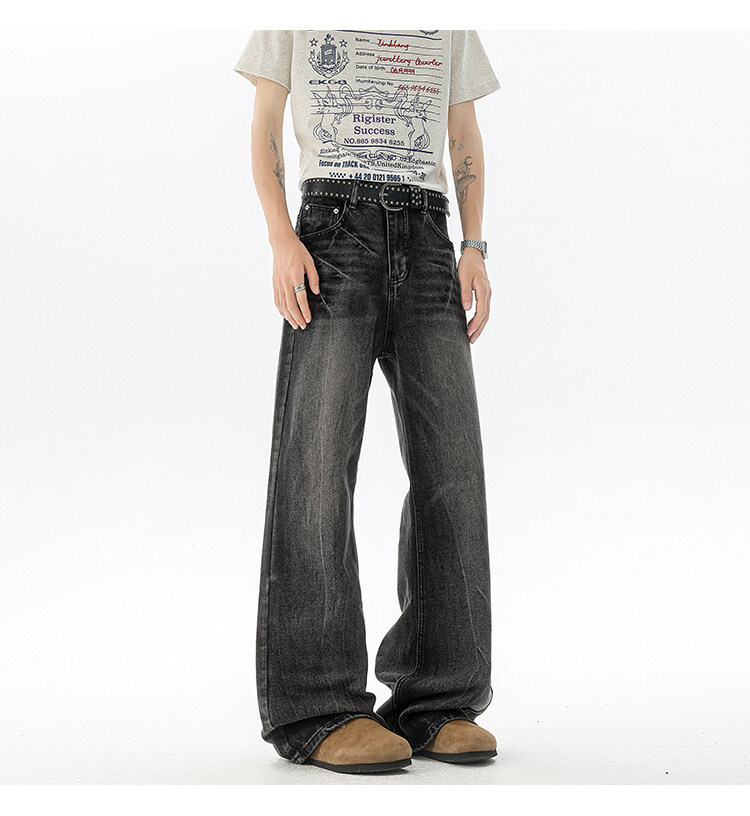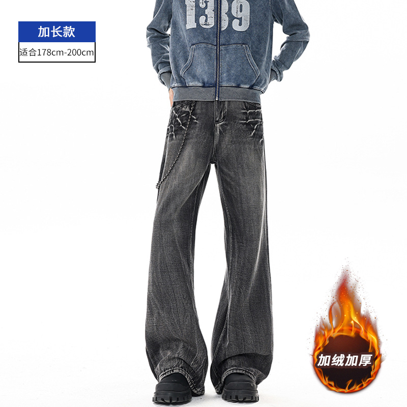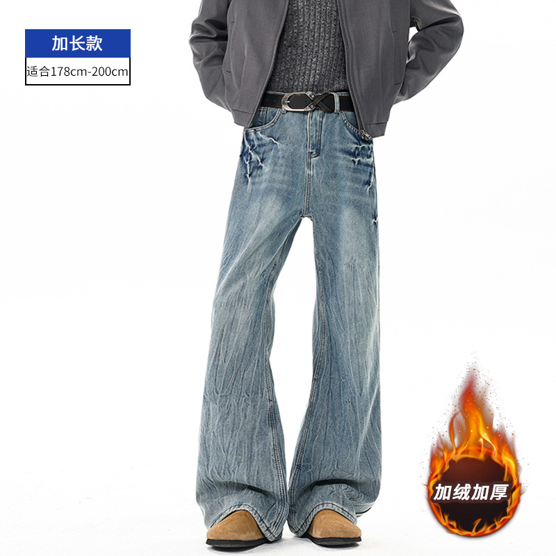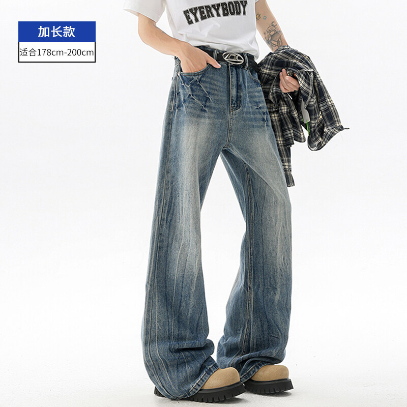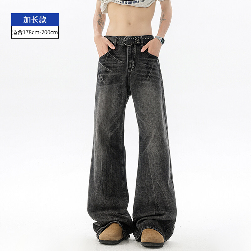 190 키가 큰 남성용 클린핏 라이트닝 크랙 청바지 트렌디 브랜드 디자인 스트레이트 레그 부츠컷 팬츠스토어 가기