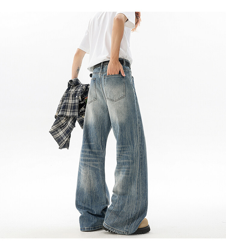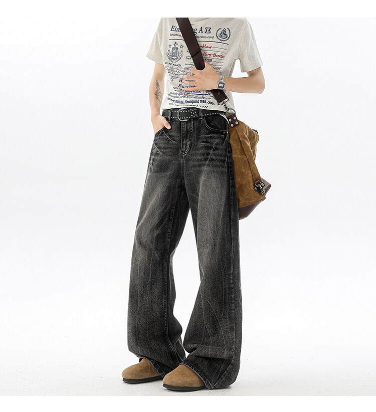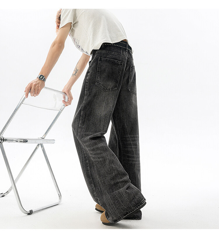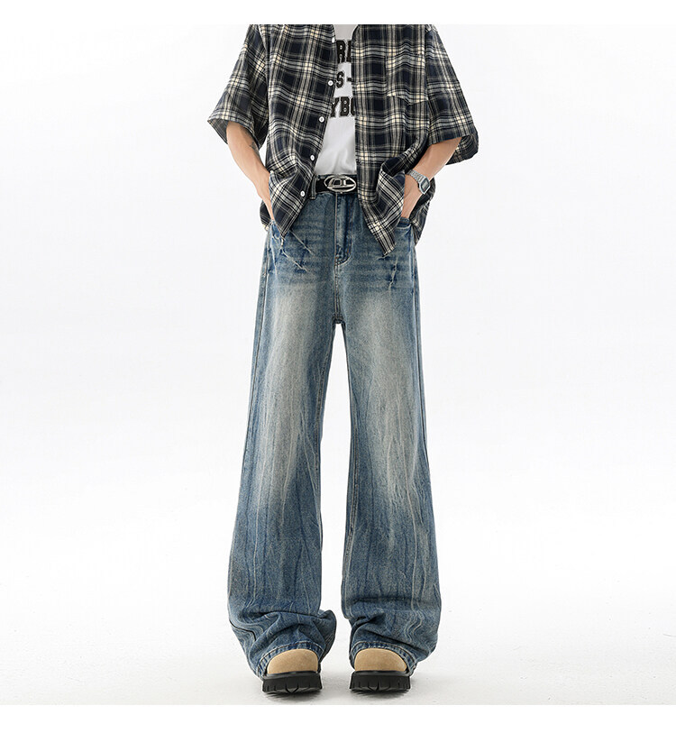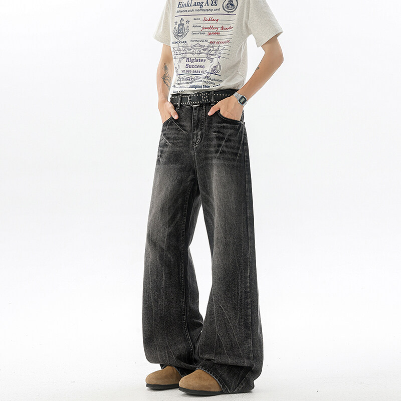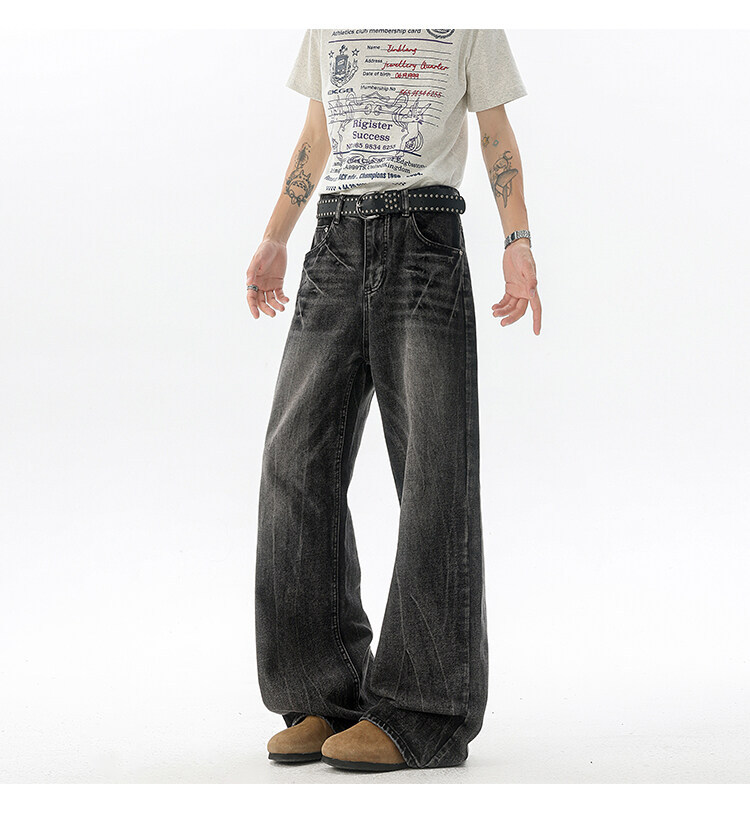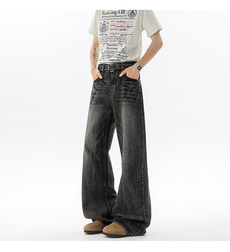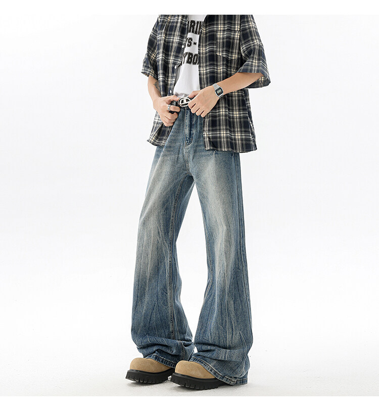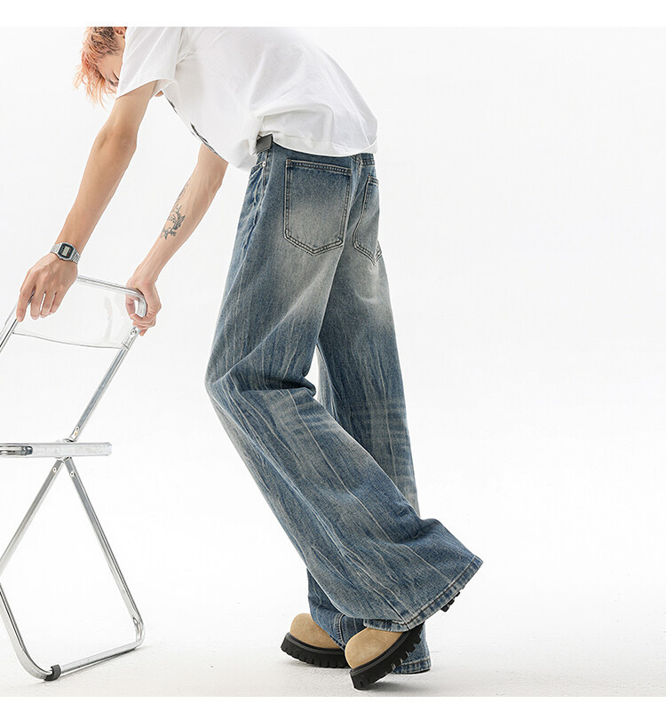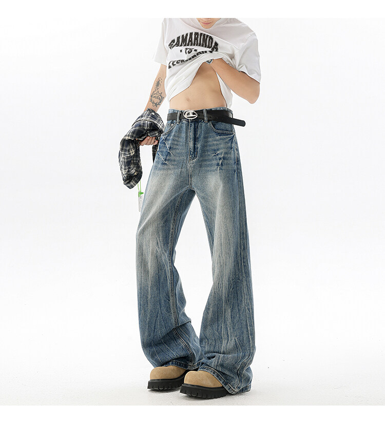 190 키가 큰 남성용 클린핏 라이트닝 크랙 청바지 트렌디 브랜드 디자인 스트레이트 레그 부츠컷 팬츠스토어 가기