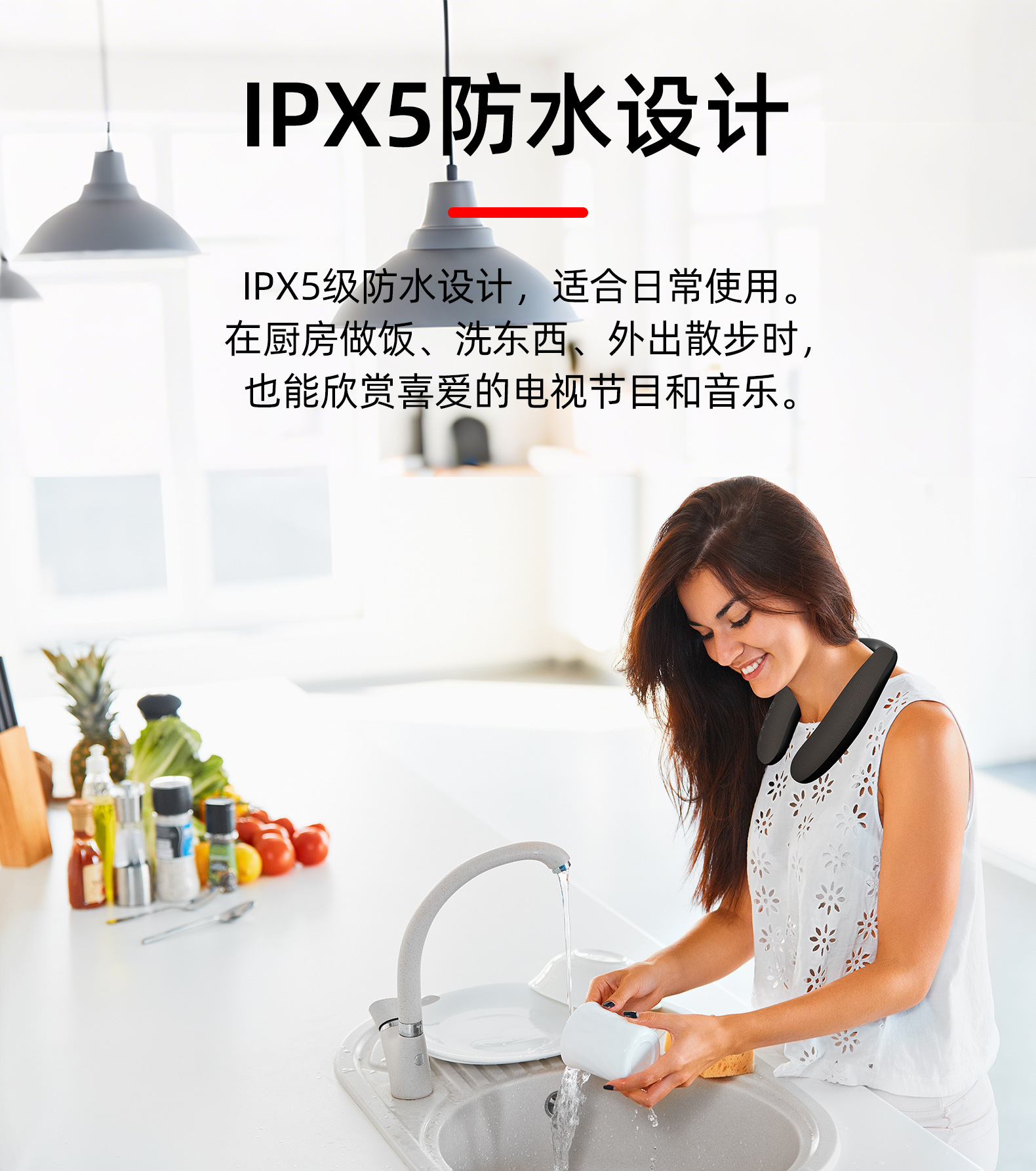 새로운 교수형 목 유형 무선 블루투스 스피커 패브릭 방수 휴대용 웨어러블 서브 우퍼 목 스피커