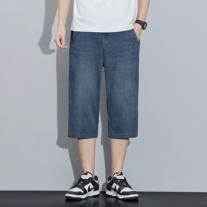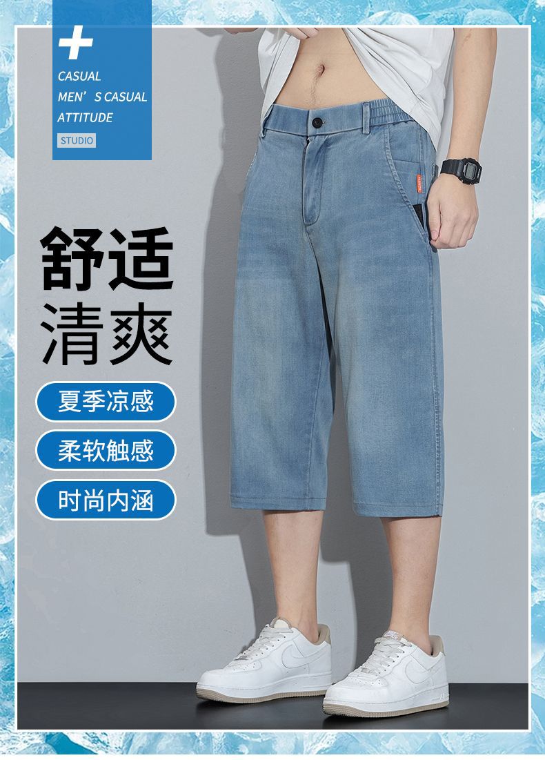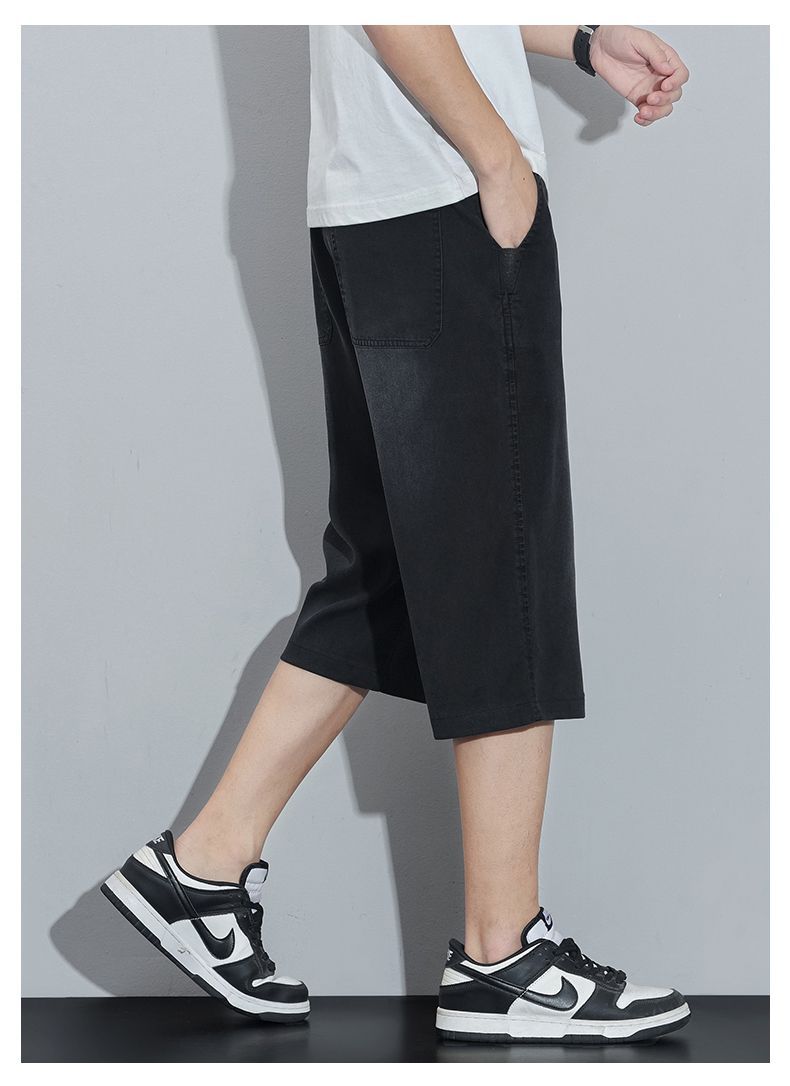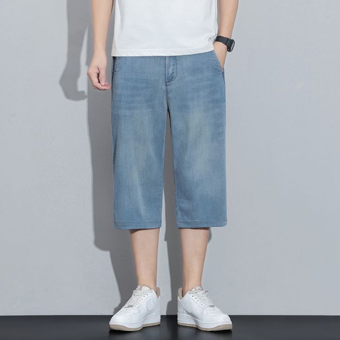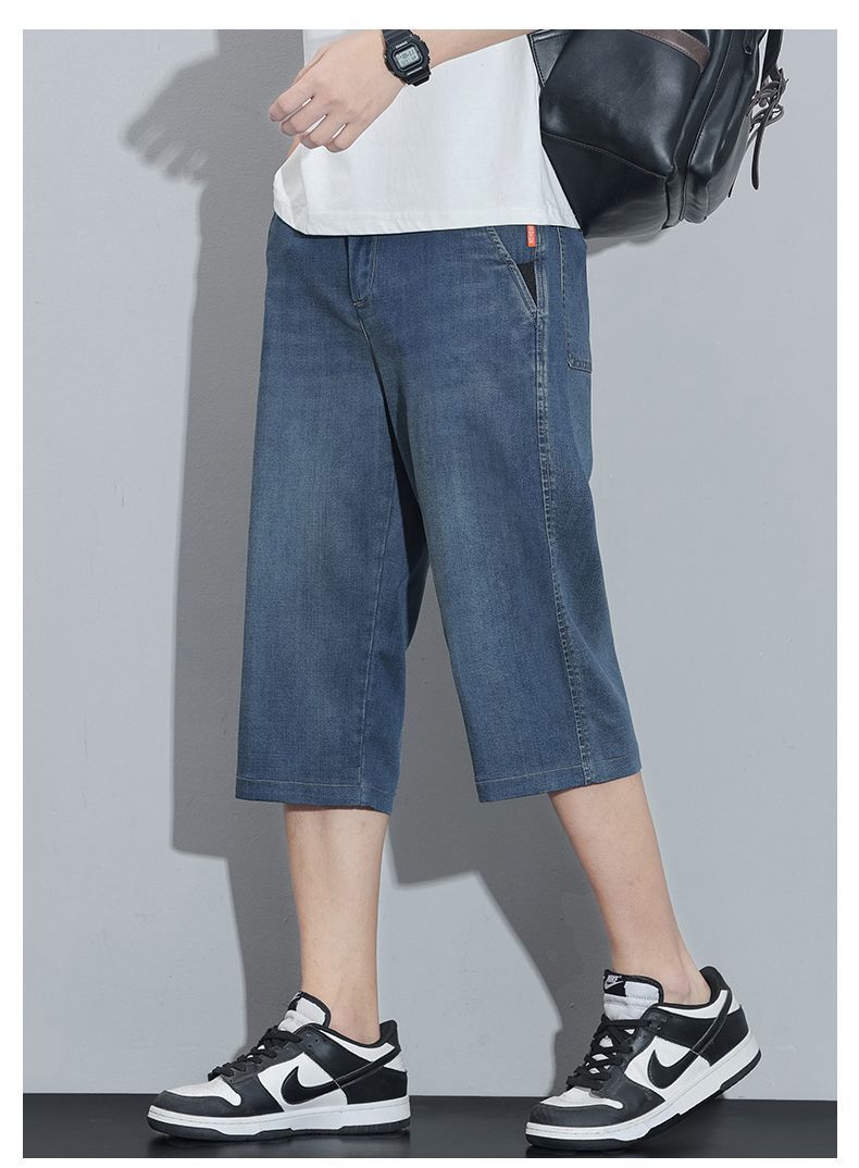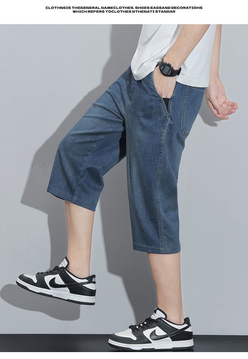 텐셀 데님 반바지 남성 2025 여름 얇은 루즈 스트레이트 크롭 팬츠 레트로 캐주얼 크롭 팬츠