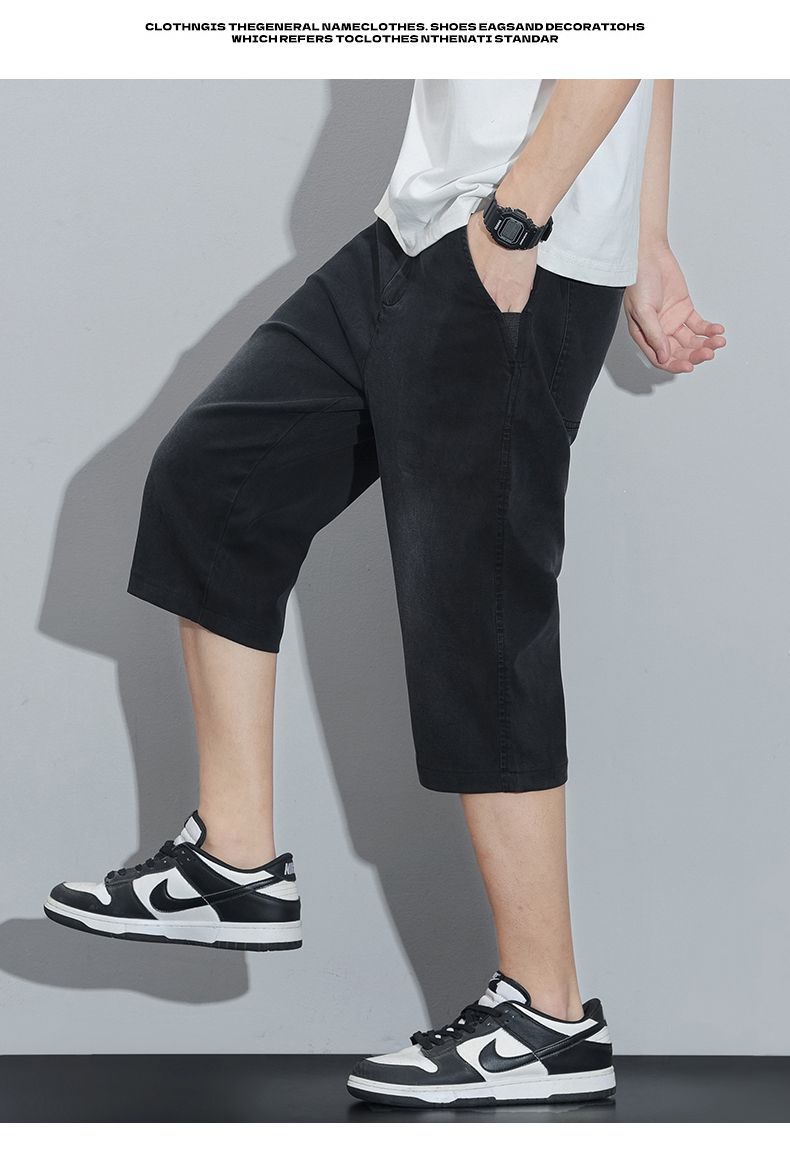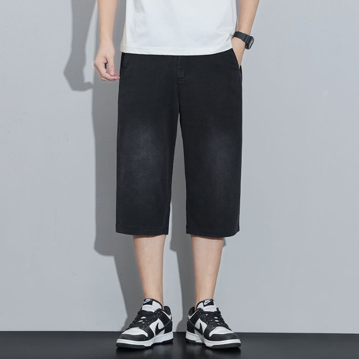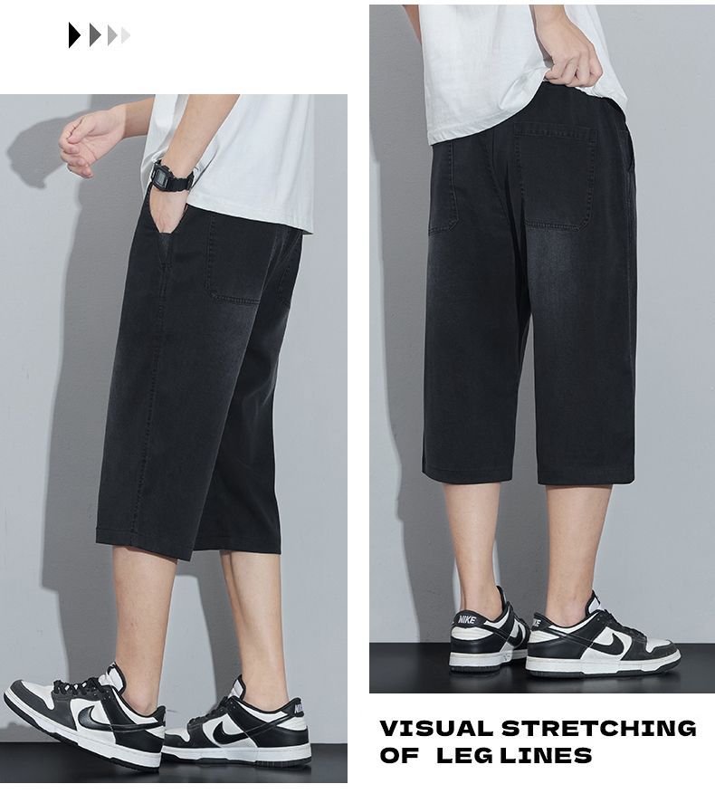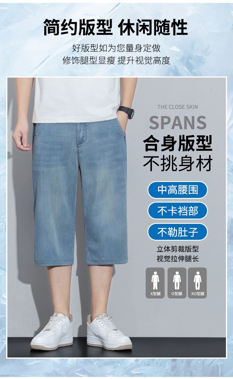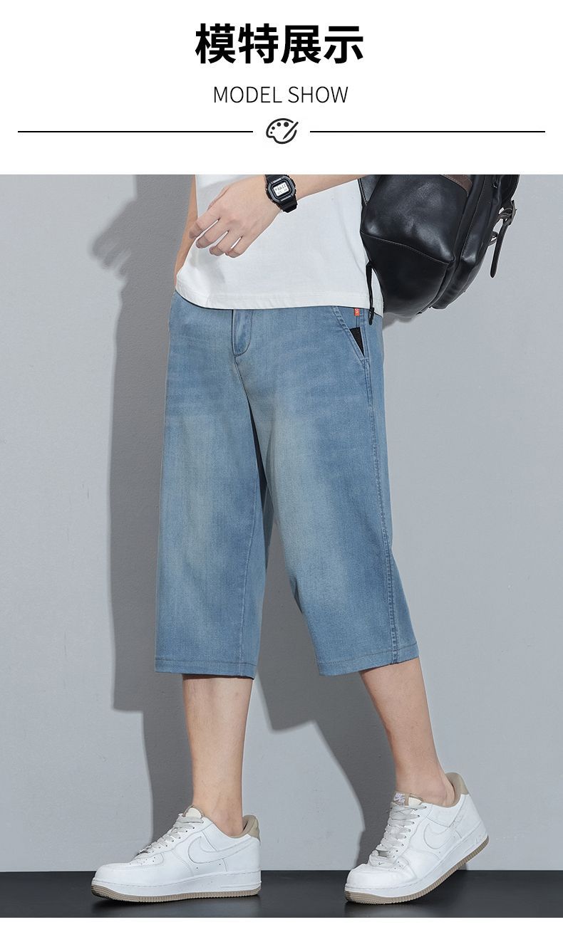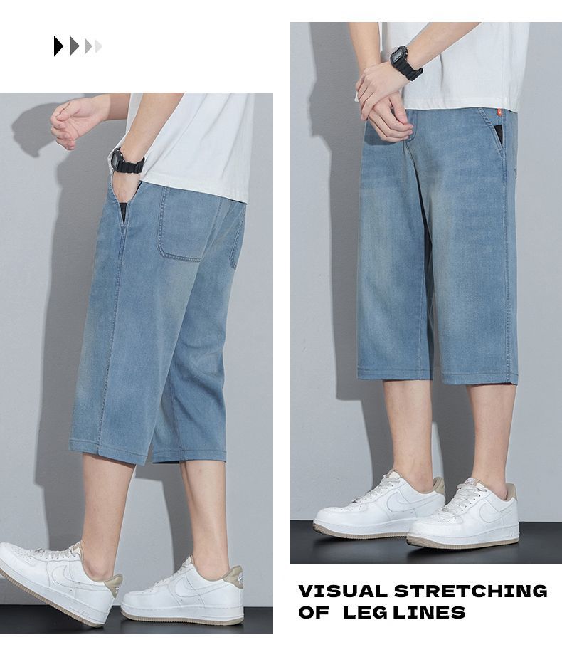 텐셀 데님 반바지 남성 2025 여름 얇은 루즈 스트레이트 크롭 팬츠 레트로 캐주얼 크롭 팬츠