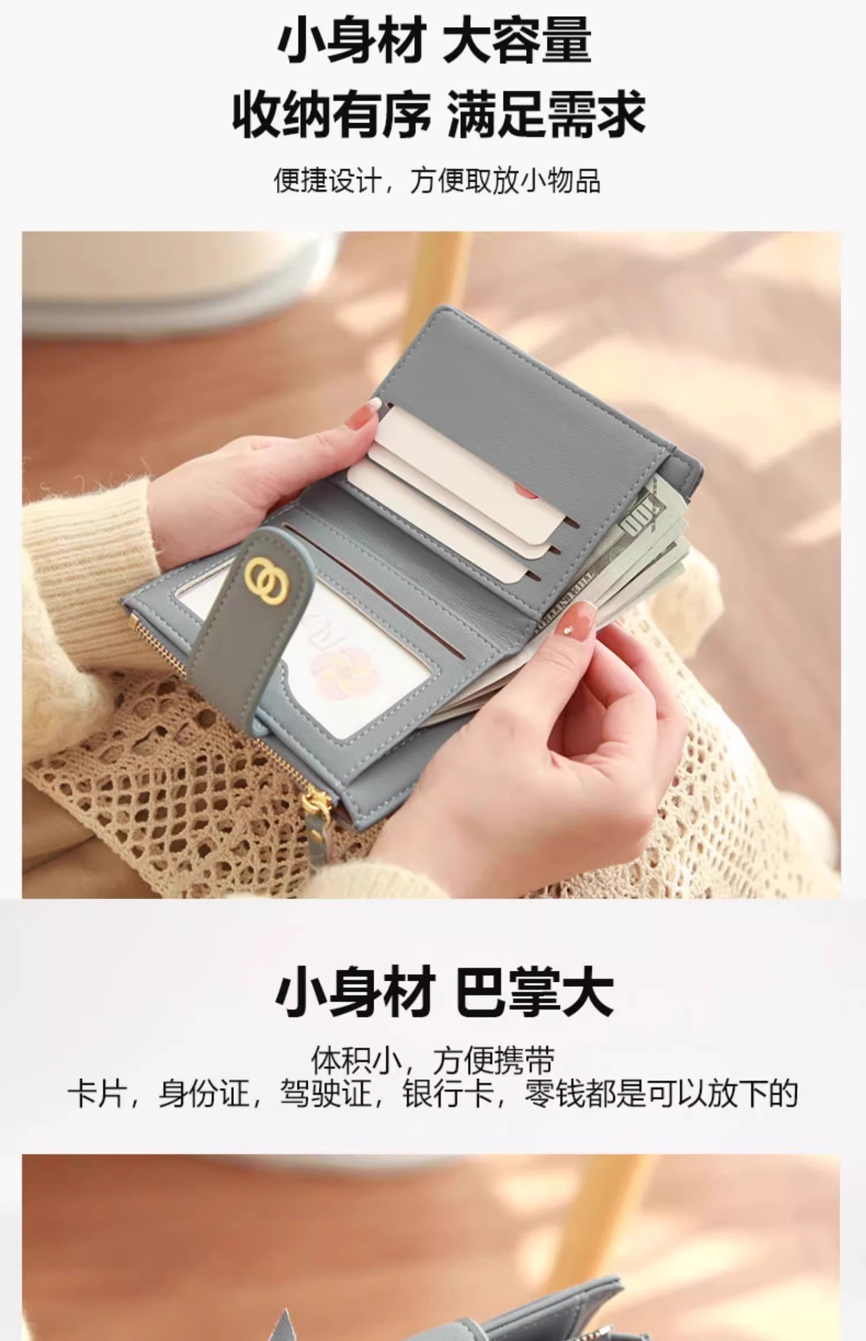 여성용 지갑 새로운 스타일의 가죽 질감 짧은 지갑 멀티 카드 슬롯 카드 홀더 동전 지갑 투인원 심플 빅 머니 클립스토어 가기
