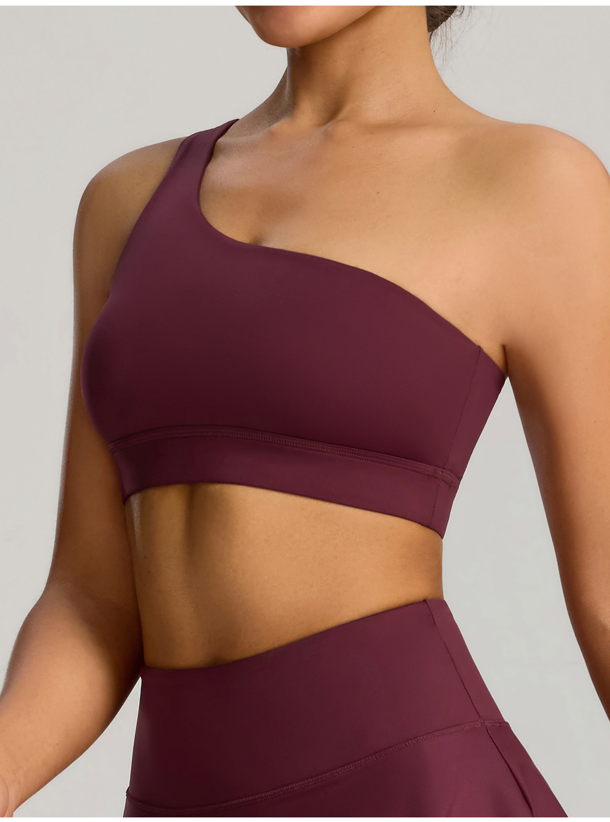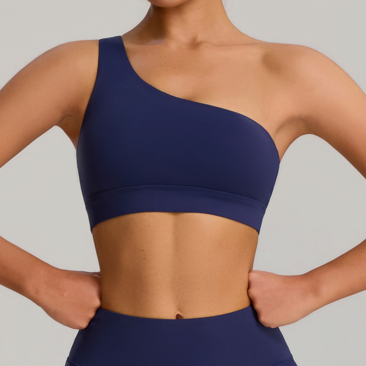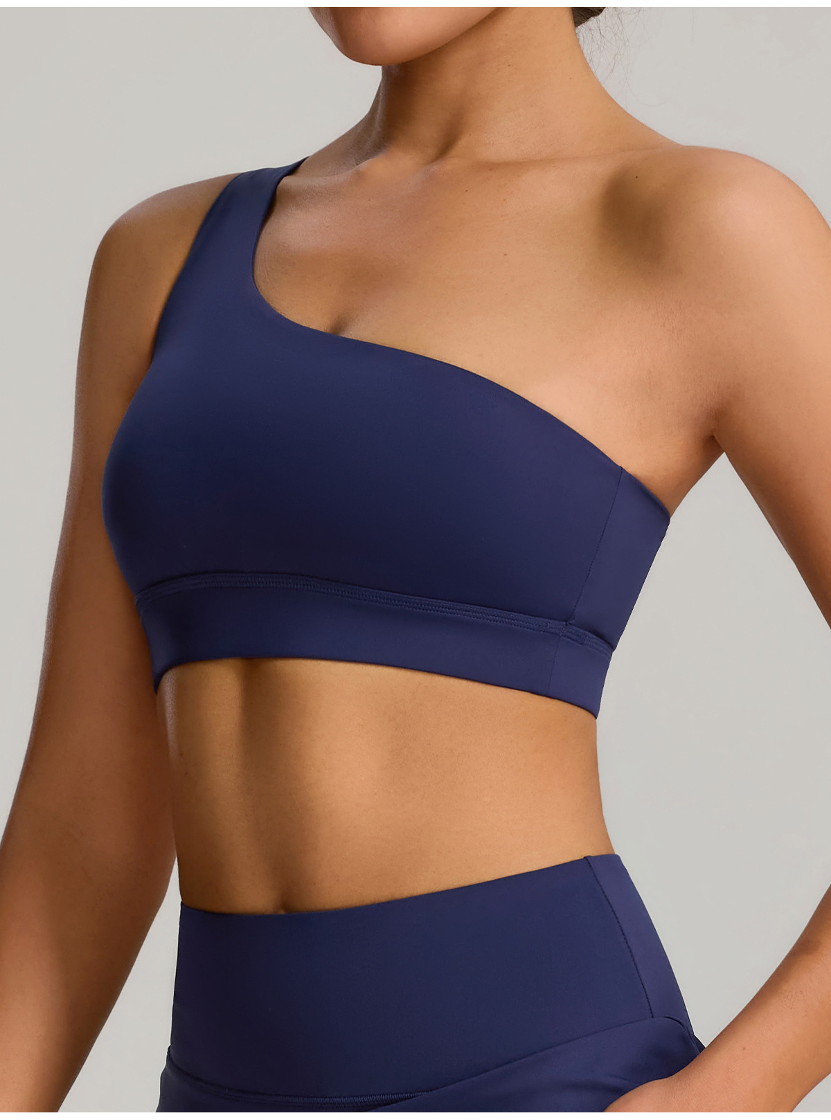 유럽과 미국의 새로운 스타일의 비스듬한 어깨 스포츠 브라 러닝 속건성 충격 방지 스포츠 브라 탄성 누드 요가 의류 조끼