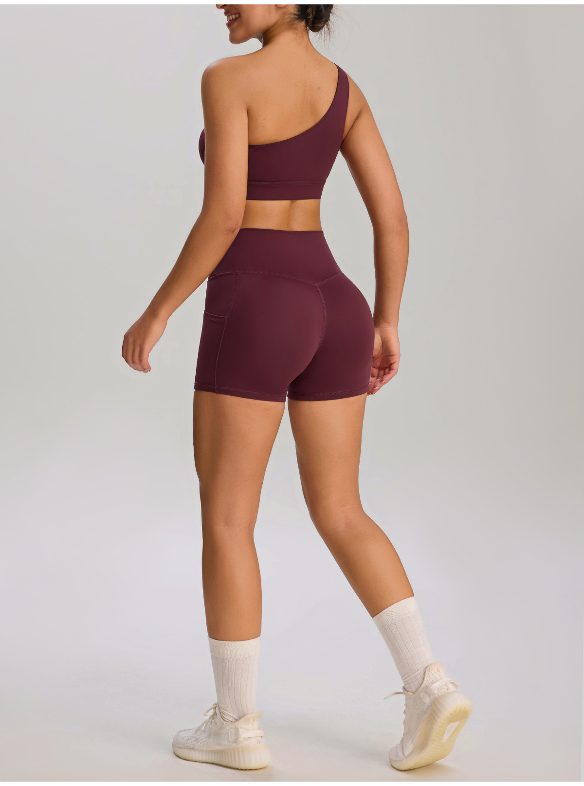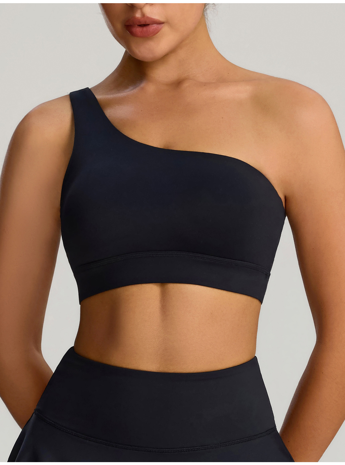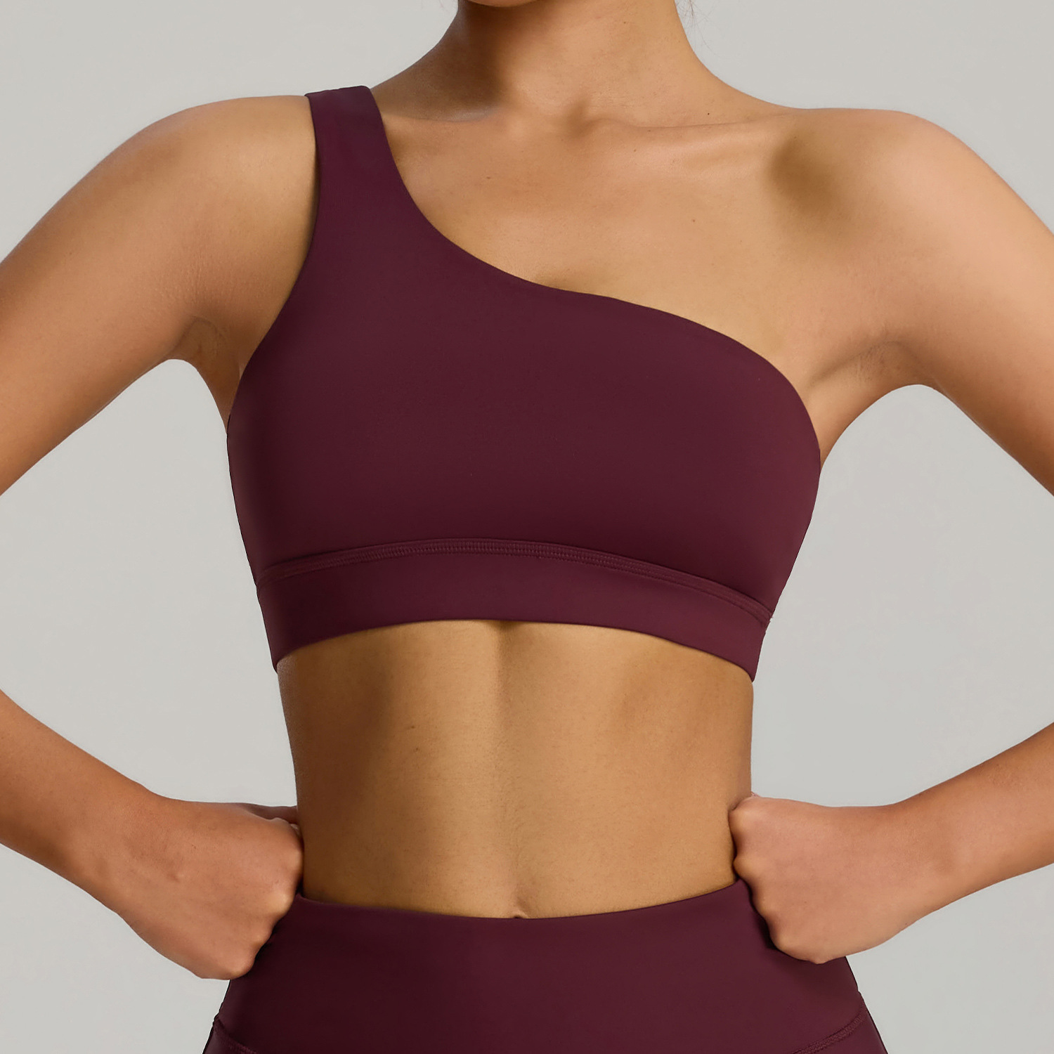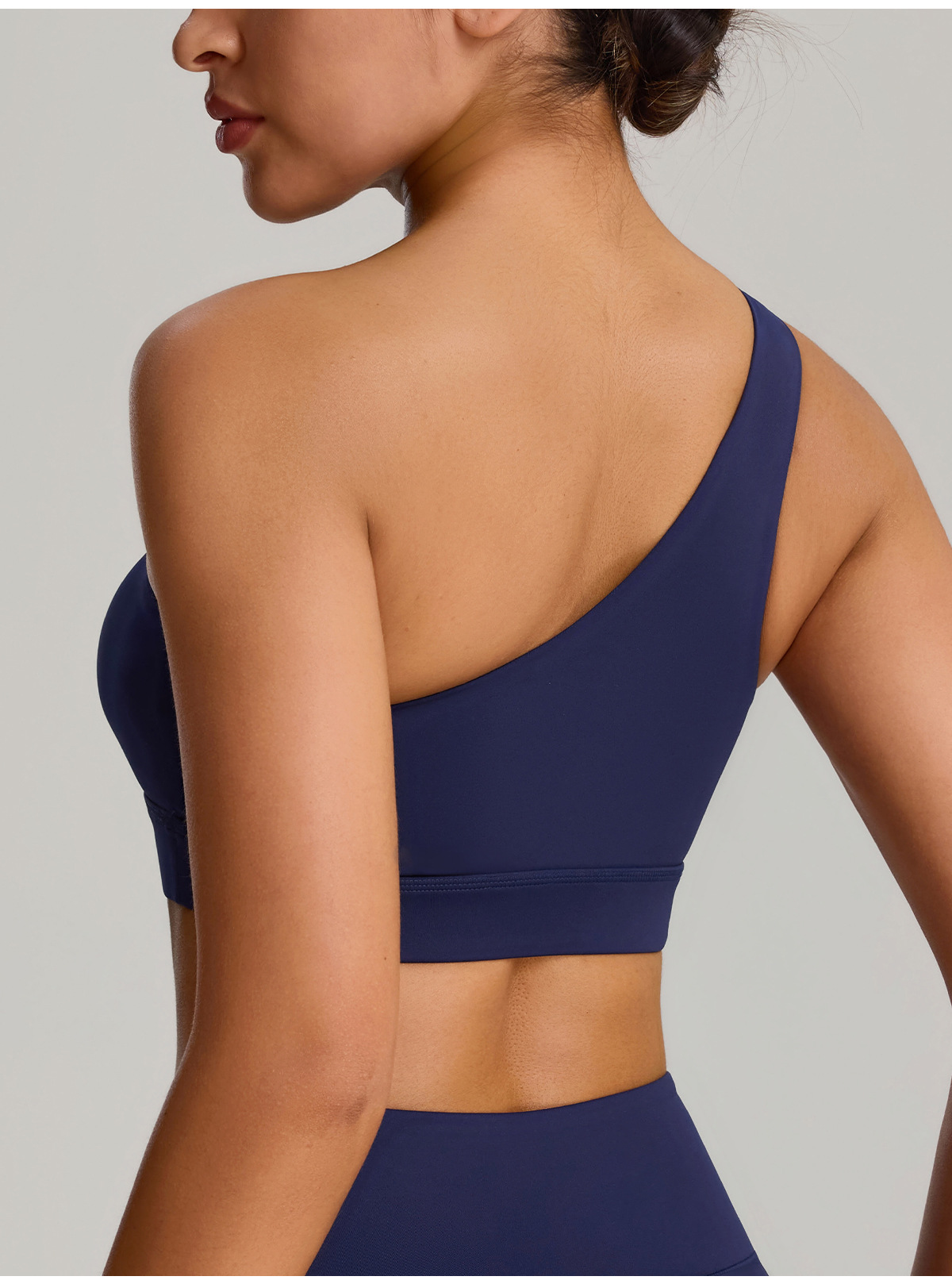 유럽과 미국의 새로운 스타일의 비스듬한 어깨 스포츠 브라 러닝 속건성 충격 방지 스포츠 브라 탄성 누드 요가 의류 조끼