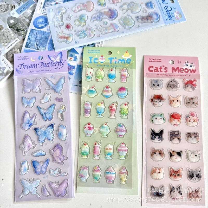 소녀를위한 양각 에폭시 만화 스티커 3 차원 재미있는 크리스탈 귀여운 스티커 휴대 전화 장식 M5 장식 재료 스티커스토어 가기