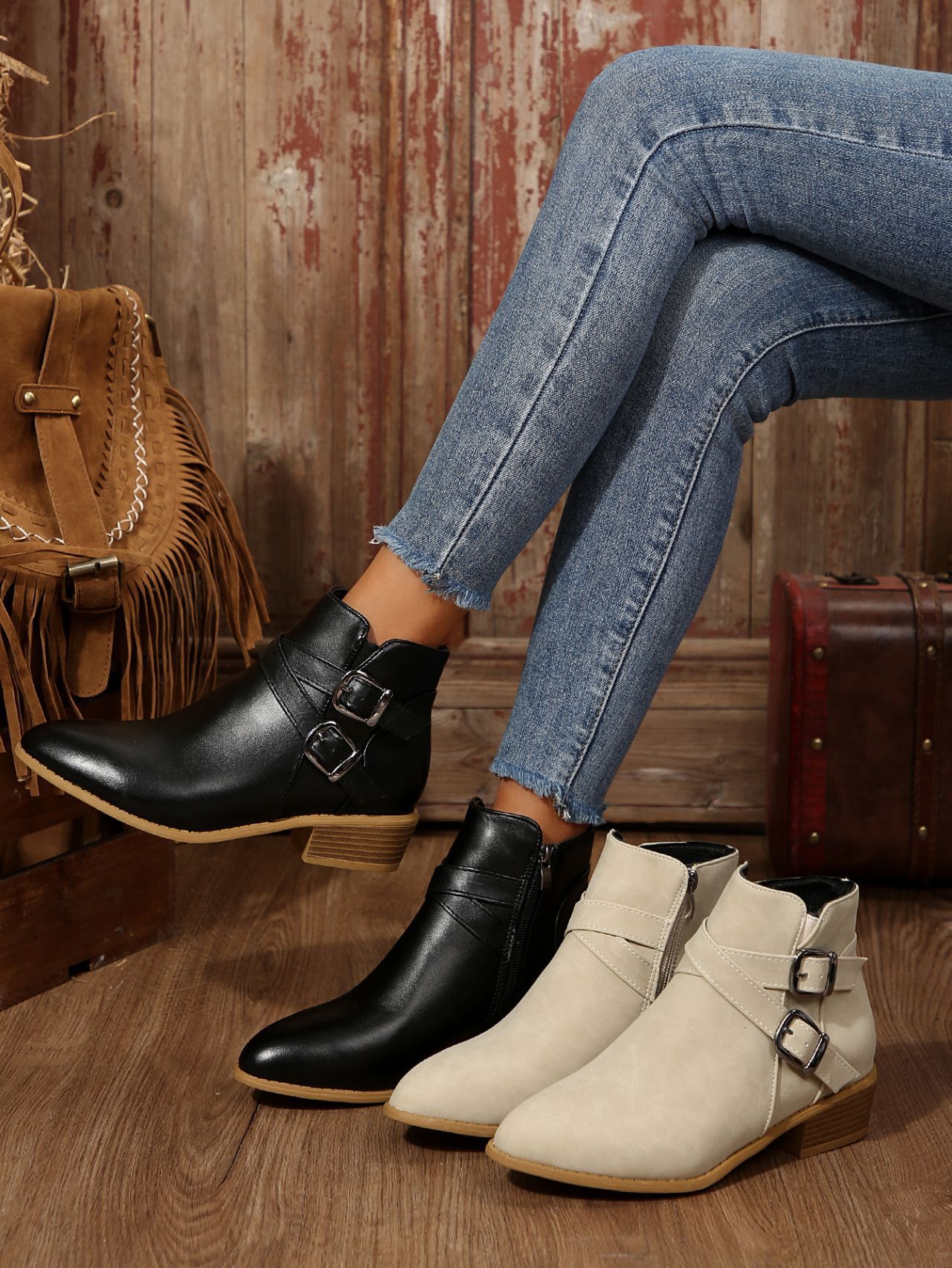 2025 새로운 가을, 겨울 유럽과 미국 대외 무역 대형 뾰족한 발가락 스퀘어 힐 사이드 지퍼 세련되고 편안한 여성용 짧은 부츠 36-43스토어 가기