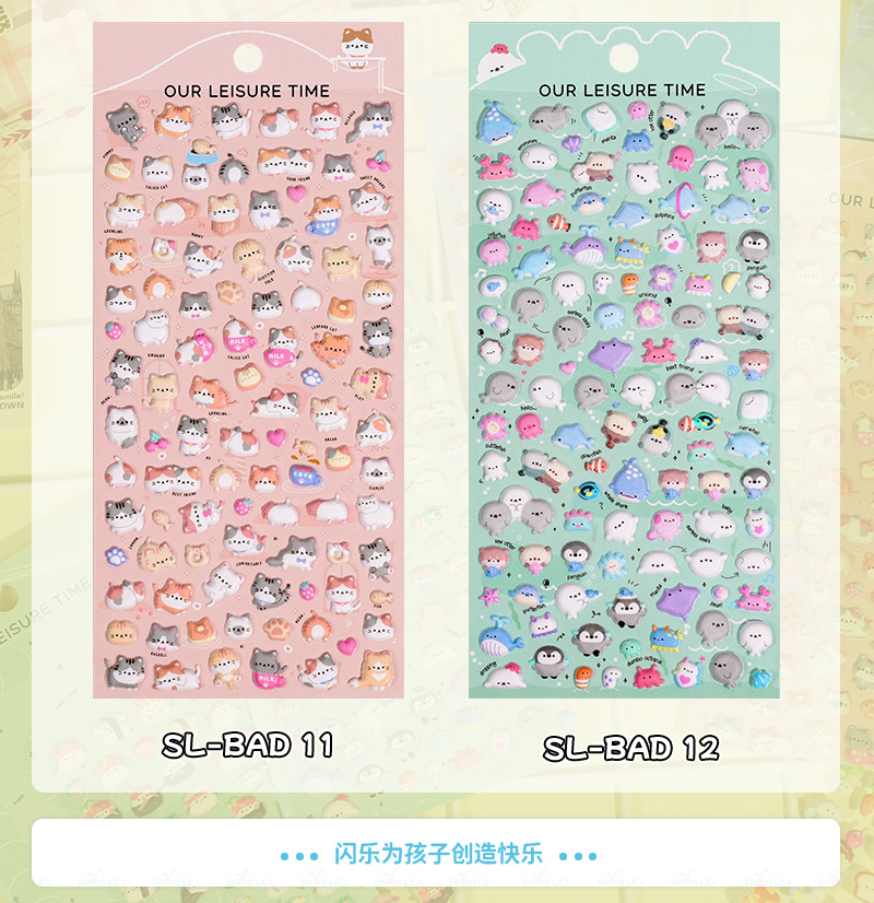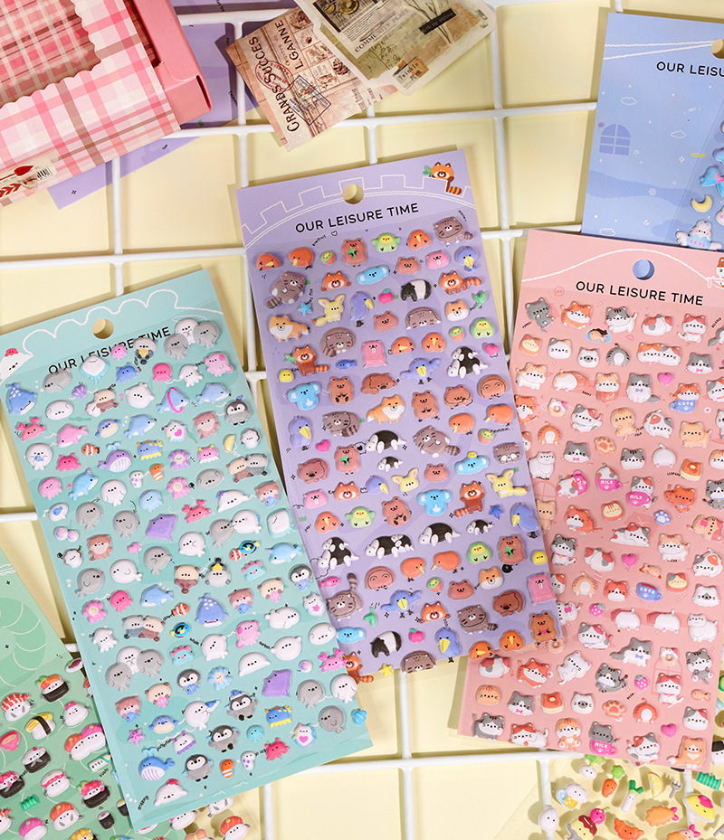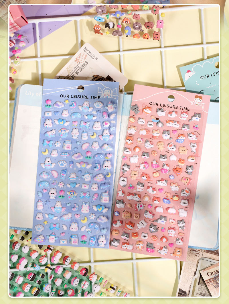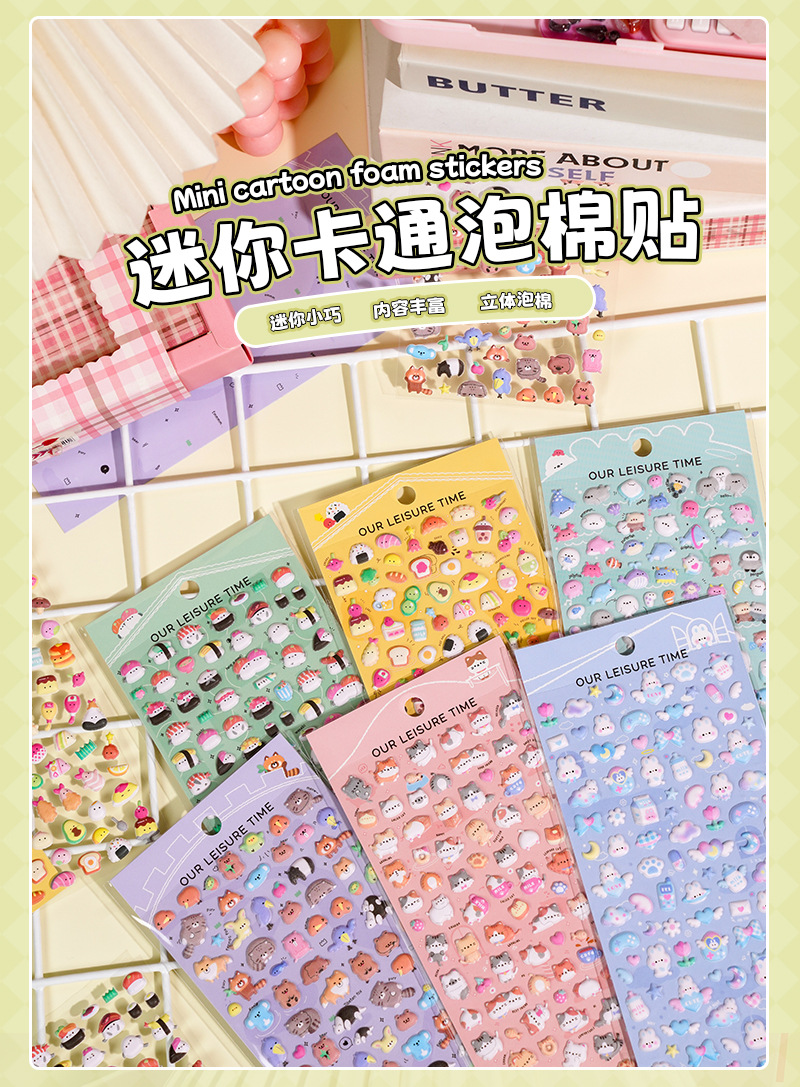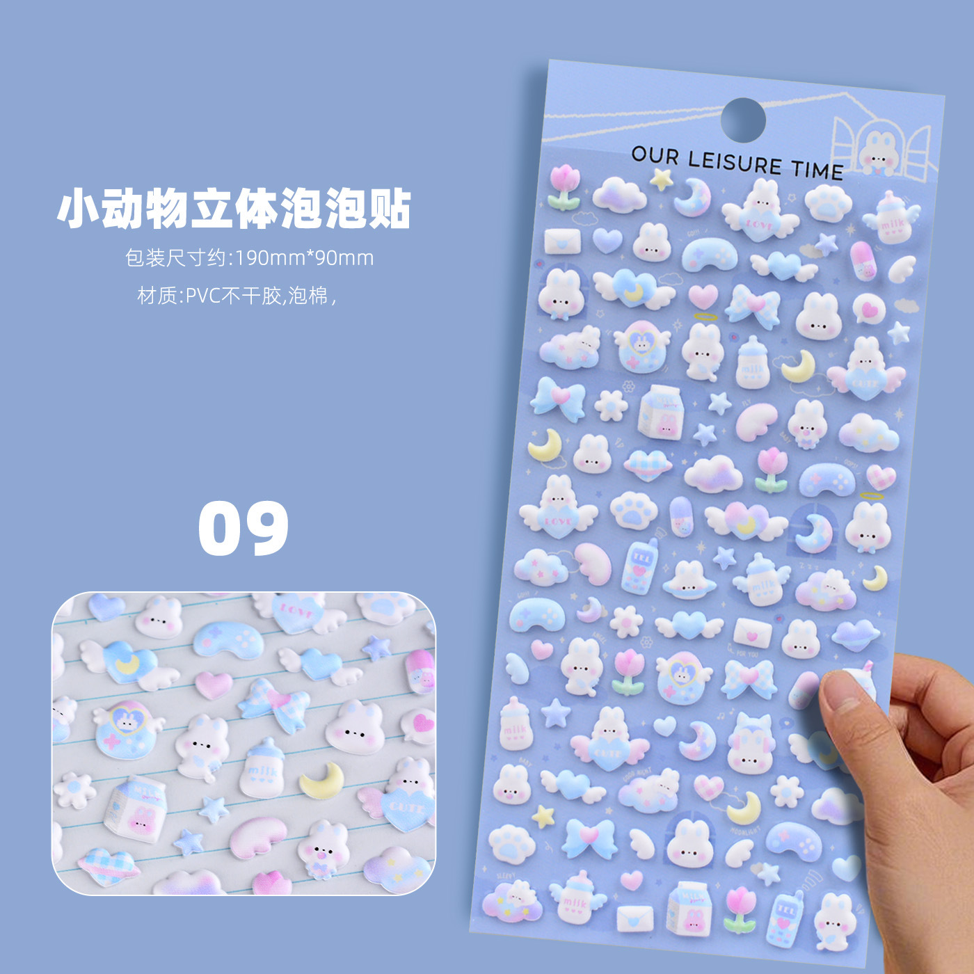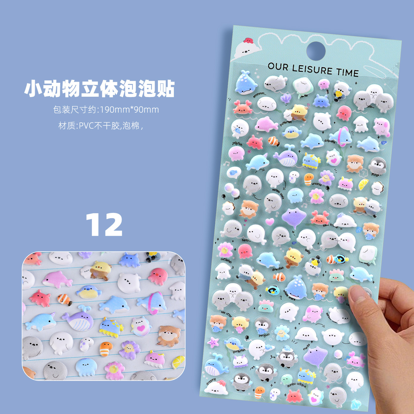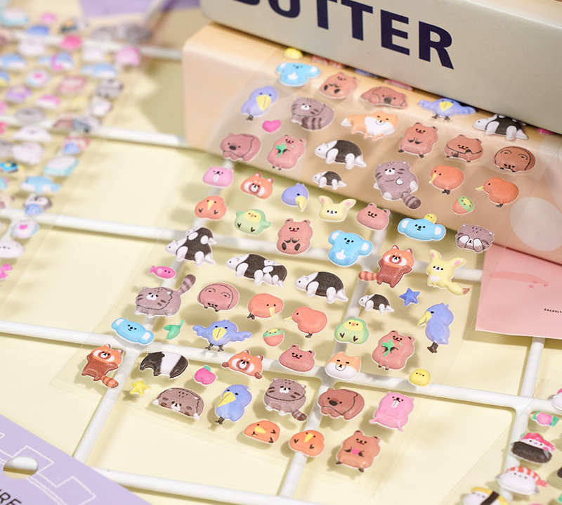 Xiaohongshu 새로운 만화 동물 거품 스티커 작은 입자 거품 스티커 3D 입체 DIY 장식 스티커 Doudou