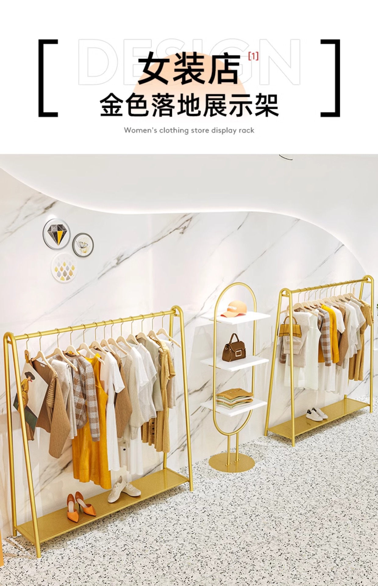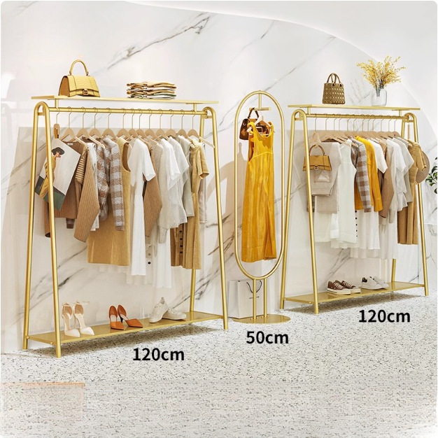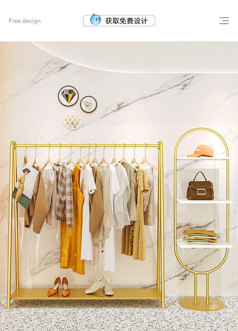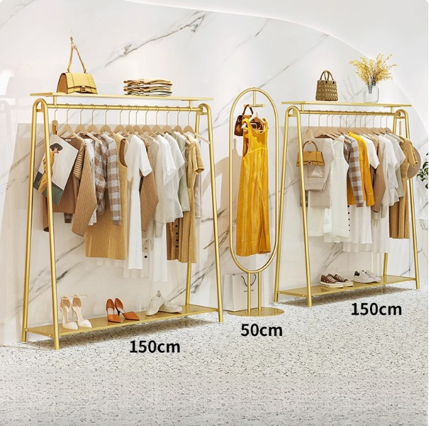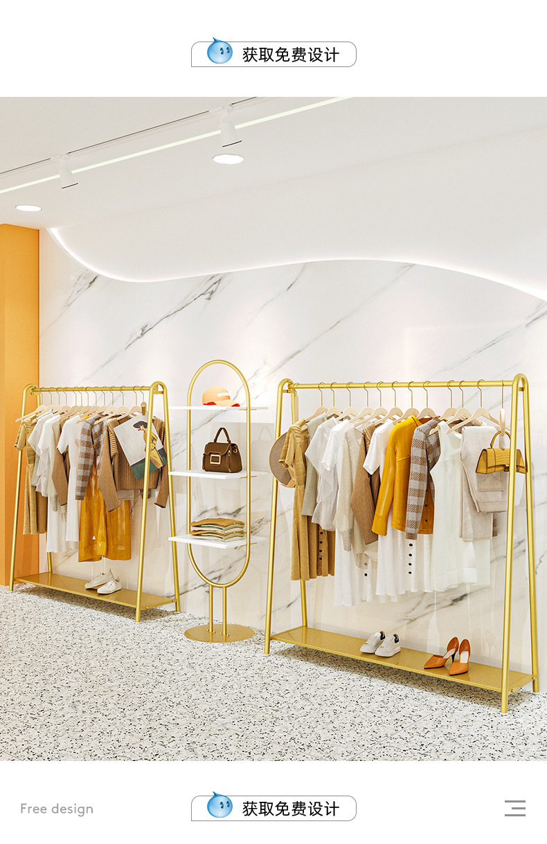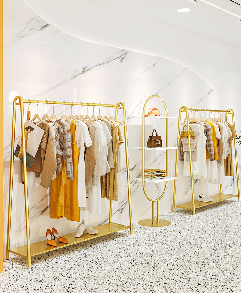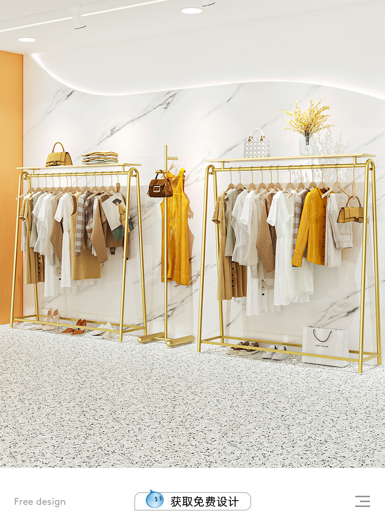 의류 매장 디스플레이 랙 도매 여성 의류 매장 바닥 스탠딩 골드 선반 아동 의류 매장 옷 걸이 아일랜드 랙 디스플레이 랙스토어 가기