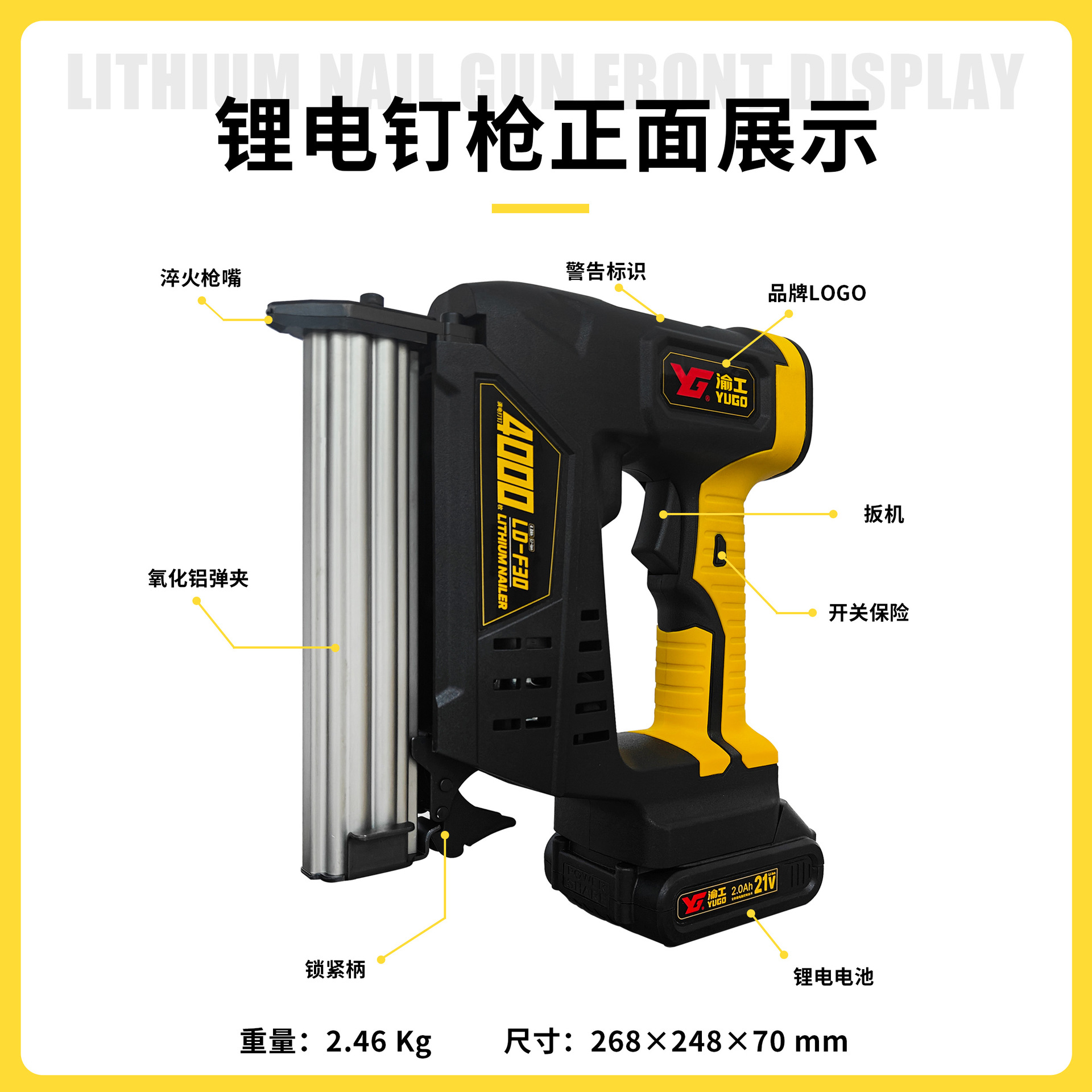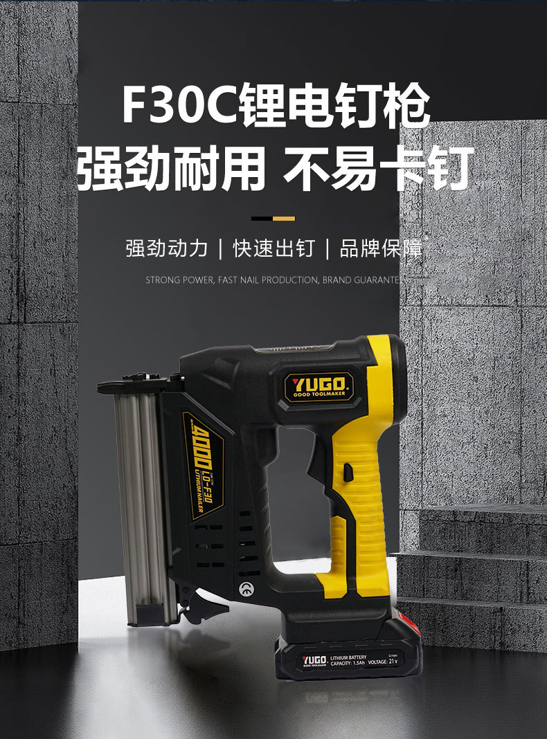 유킹 F30 무선 리튬 전동 못총, 고출력 경량 브러시리스 시멘트 직선 못총, 목공 장식용 강력한 동력