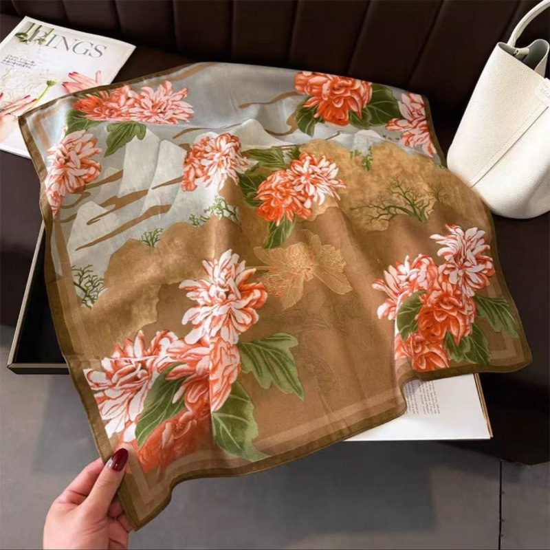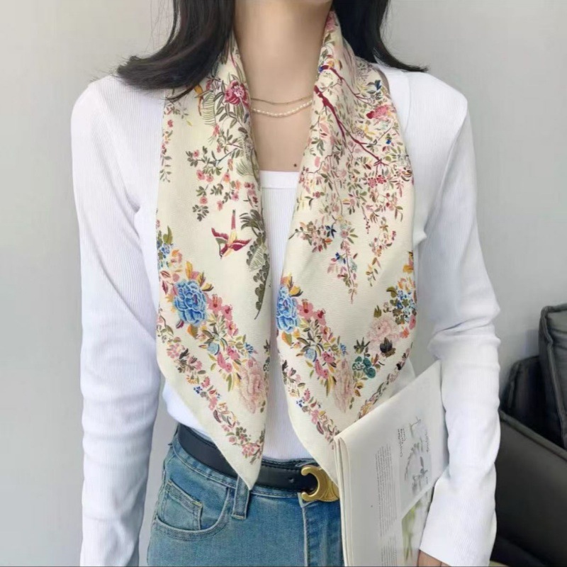 새로운 클래식 플로럴 레트로 스타일 감촉의 70cm 스카프