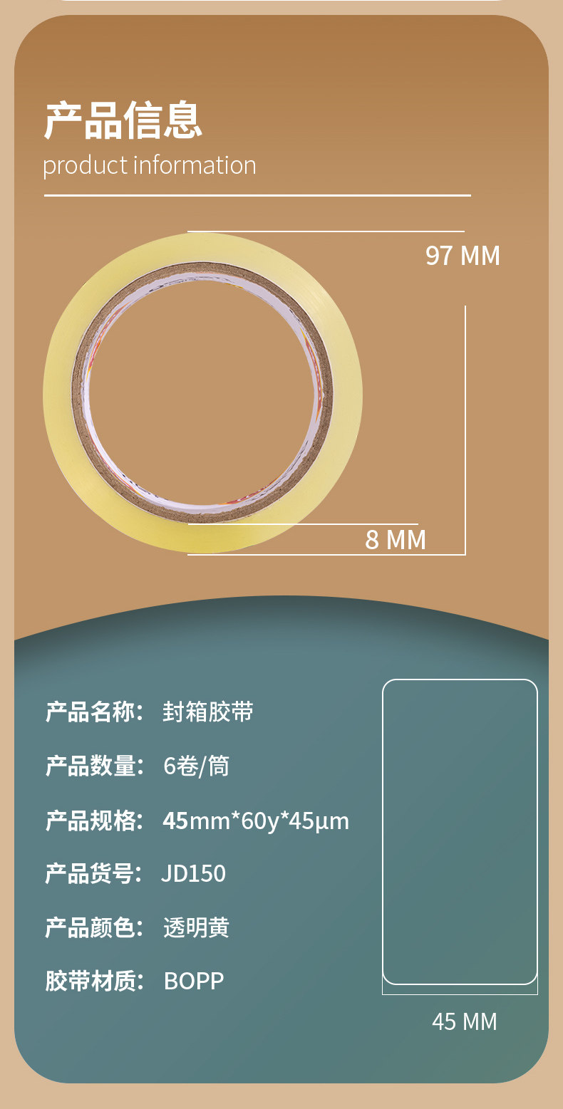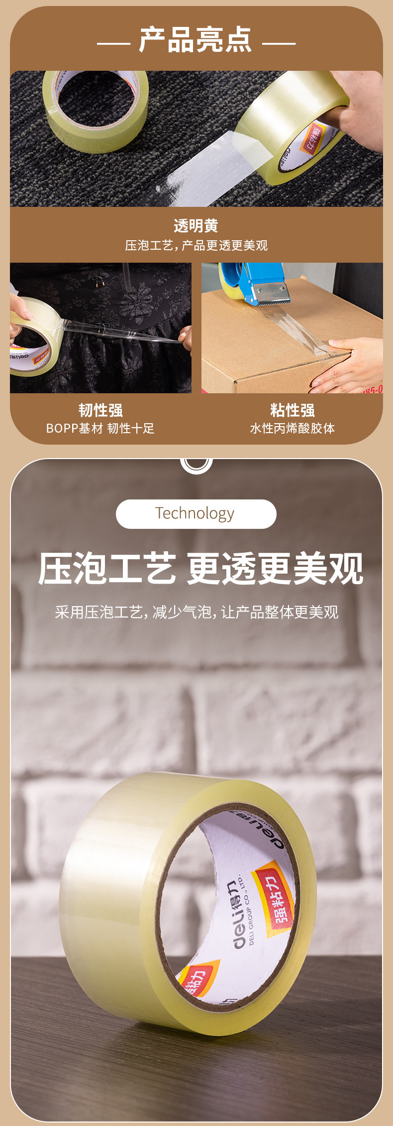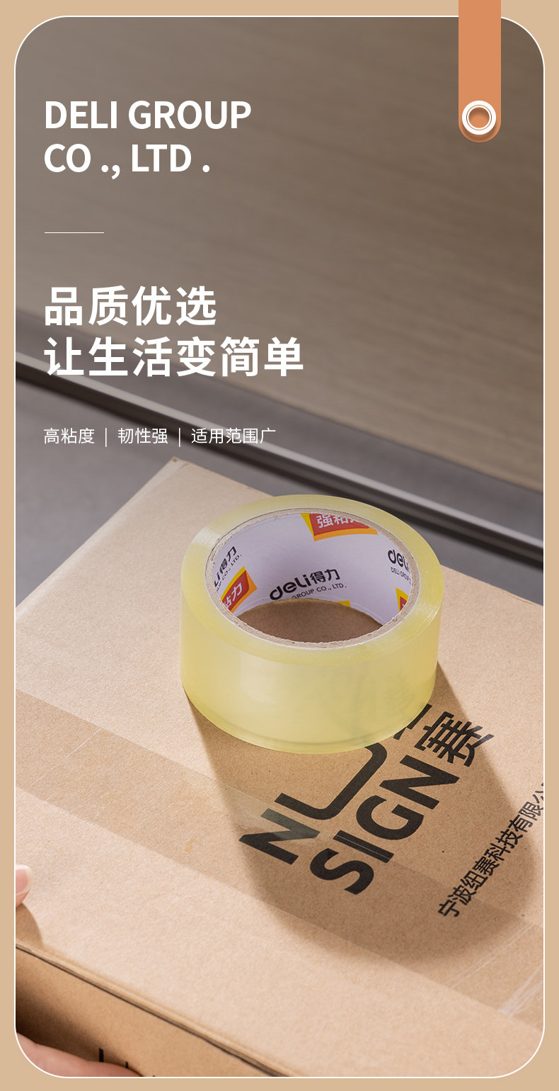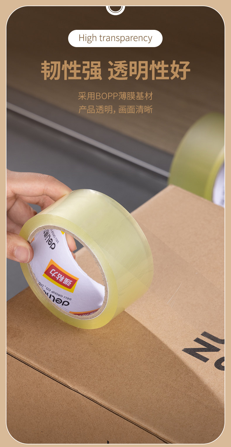 델리 투명 베이지 테이프 대형 롤 씰링 테이프 6cm 폭과 두꺼운 투명 테이프 고점도 전체 상자 도매