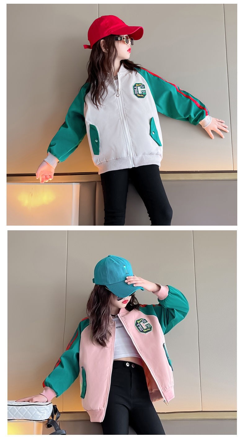 여아 코트 새로운 스타일 중대형 아동 야구 유니폼 컬러 블록 프린트 재킷 여아 코트 봄, 가을 상의 방풍 재킷