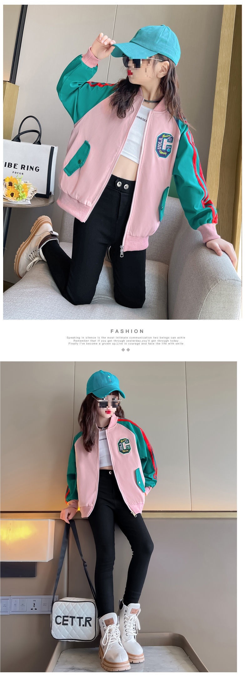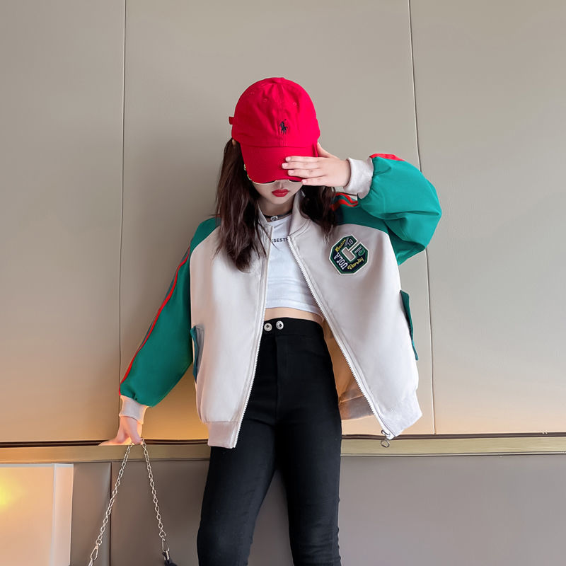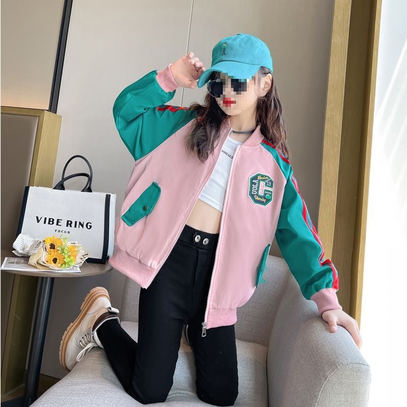 여아 코트 새로운 스타일 중대형 아동 야구 유니폼 컬러 블록 프린트 재킷 여아 코트 봄, 가을 상의 방풍 재킷스토어 가기
