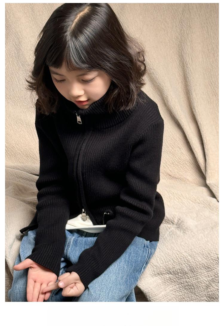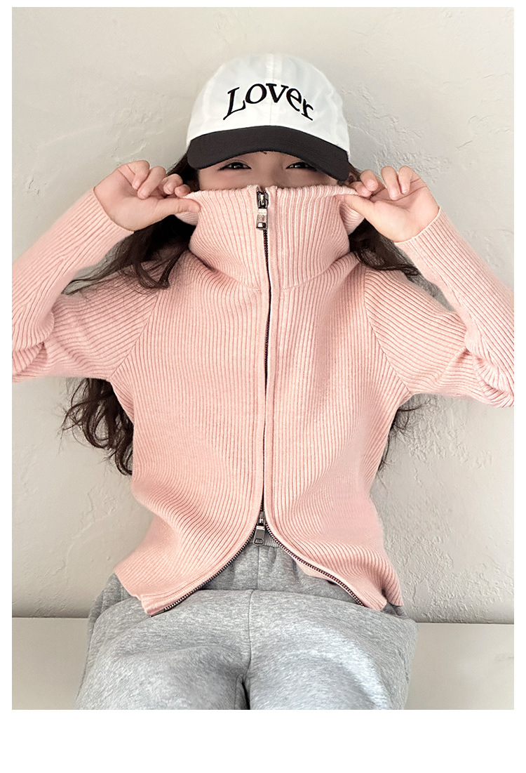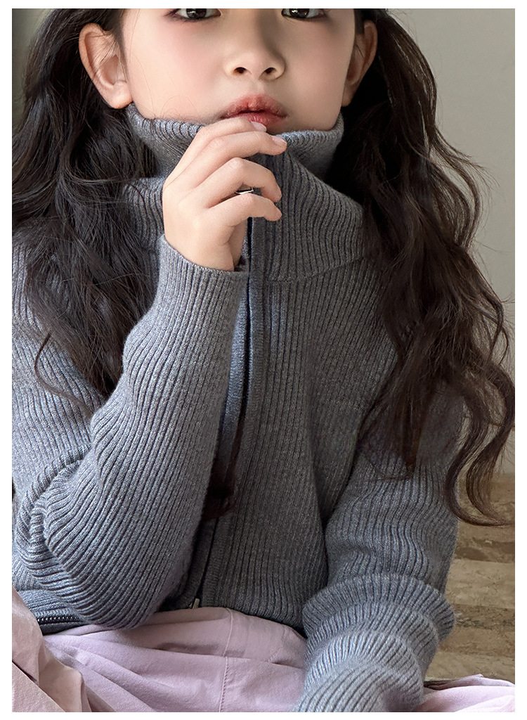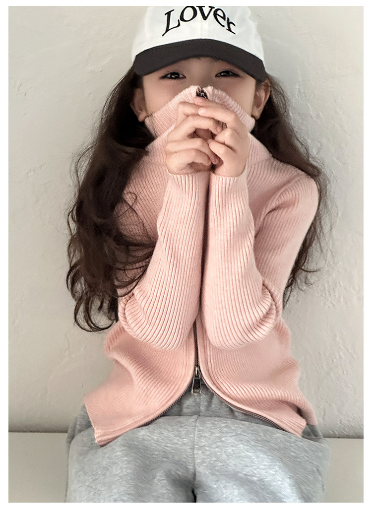 2025 여자 가을, 겨울 양방향 지퍼 터틀넥 니트 카디건 어린이 스타일 한국 스타일 다용도 스웨터 재킷