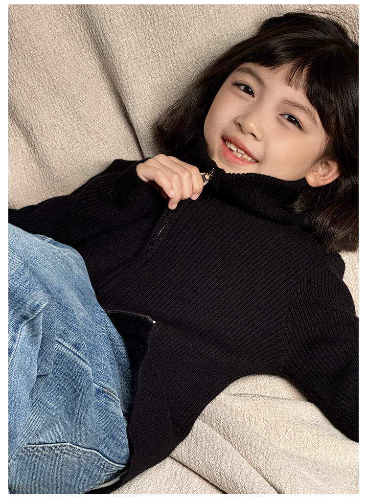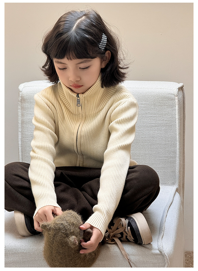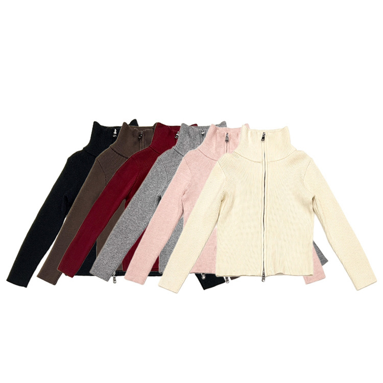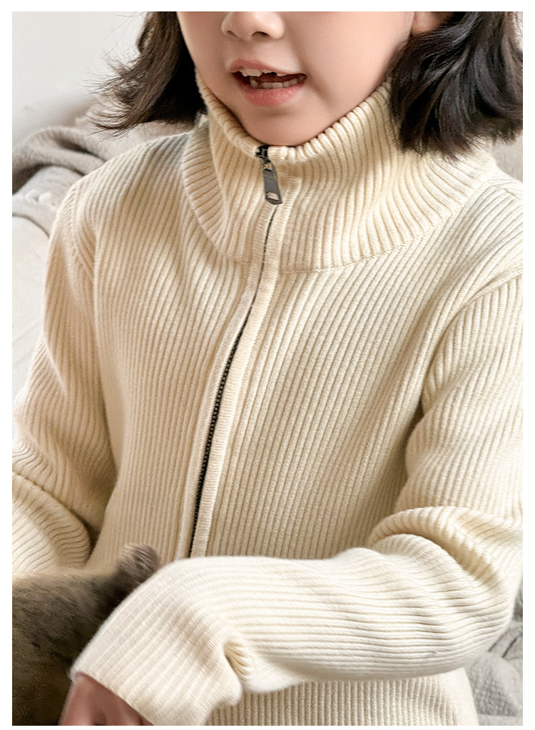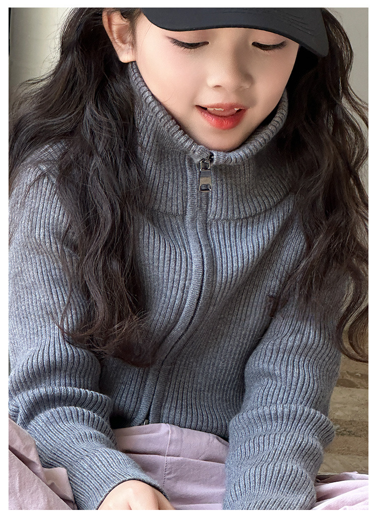 2025 여자 가을, 겨울 양방향 지퍼 터틀넥 니트 카디건 어린이 스타일 한국 스타일 다용도 스웨터 재킷