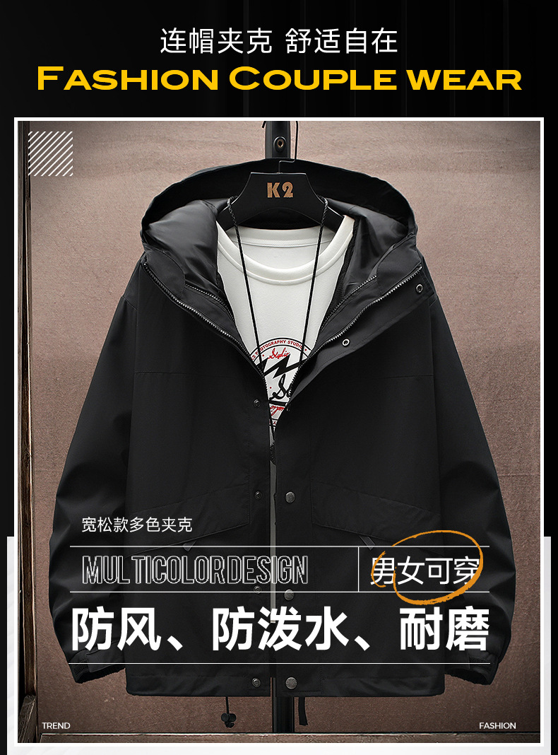 남성 의류 도매 커플 스타일 야외 등산 및 캠핑 방풍 재킷 기능성 느슨한 후드 캐주얼 스포츠 재킷