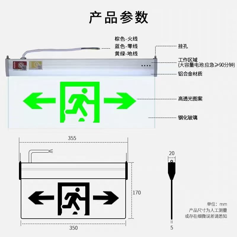 화재 비상 대피 안전 표시기 표시기 LED 장비 신호등 조명 투명 크리스탈 태그