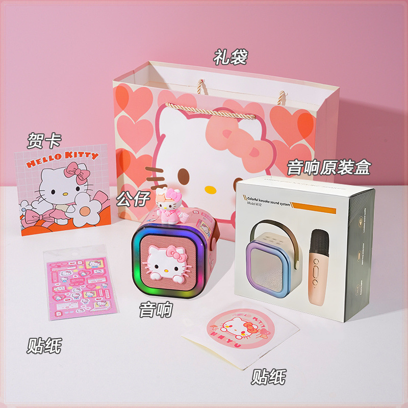 • [큰 선물 패키지 - 더블 마이크] k12 헬로키티 스피커 + 선물 상자 선물 가방