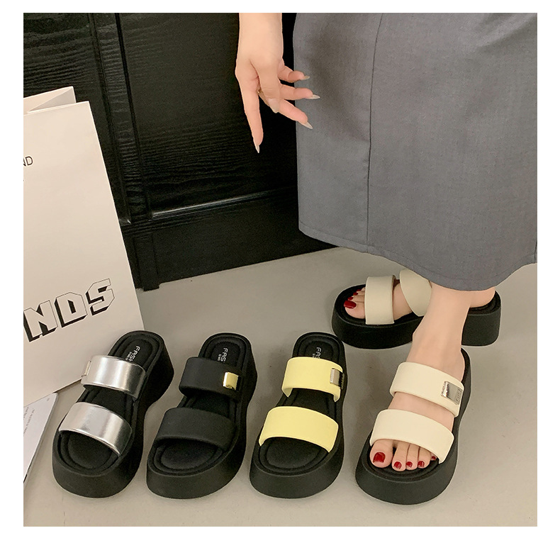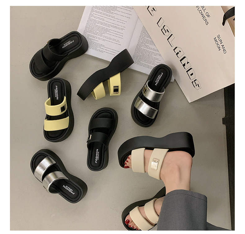 여름 아우터용 여성용 플랫폼 두꺼운 밑창 샌들 2025 새로운 스타일 아름다운 인터넷 연예인 해변 요정 스타일 원라인 패션 슬리퍼스토어 가기