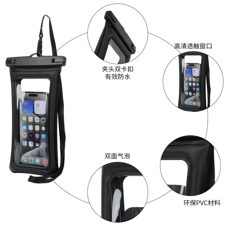 터치 스크린이 있는 이중 에어백 휴대폰 방수 가방, 수영, 강 래프팅 및 등산, 대형 투명 휴대폰 방수 가방