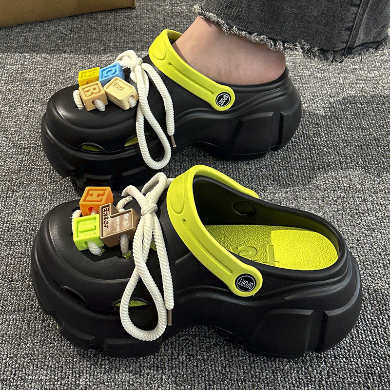 2024년 여름 여성을 위한 두꺼운 밑창 나막신, 새로운 스타일의 비치 샌들, 밖에서 신을 수 있는 발가락 덮개, 똥 밟는 느낌을 높여주는 DIY 슬리퍼