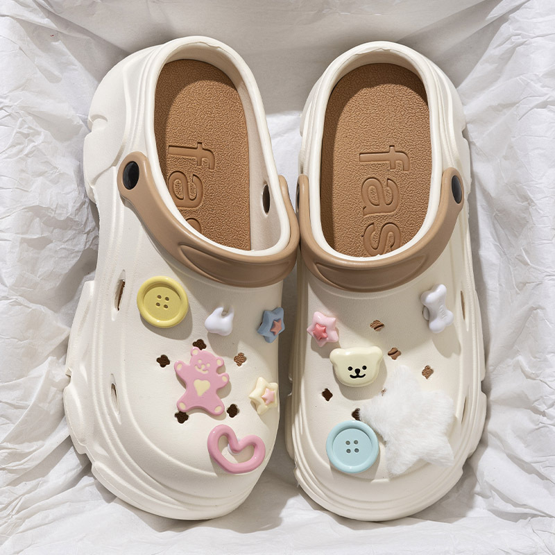2024년 여름 여성을 위한 두꺼운 밑창 나막신, 새로운 스타일의 비치 샌들, 밖에서 신을 수 있는 발가락 덮개, 똥 밟는 느낌을 높여주는 DIY 슬리퍼스토어 가기