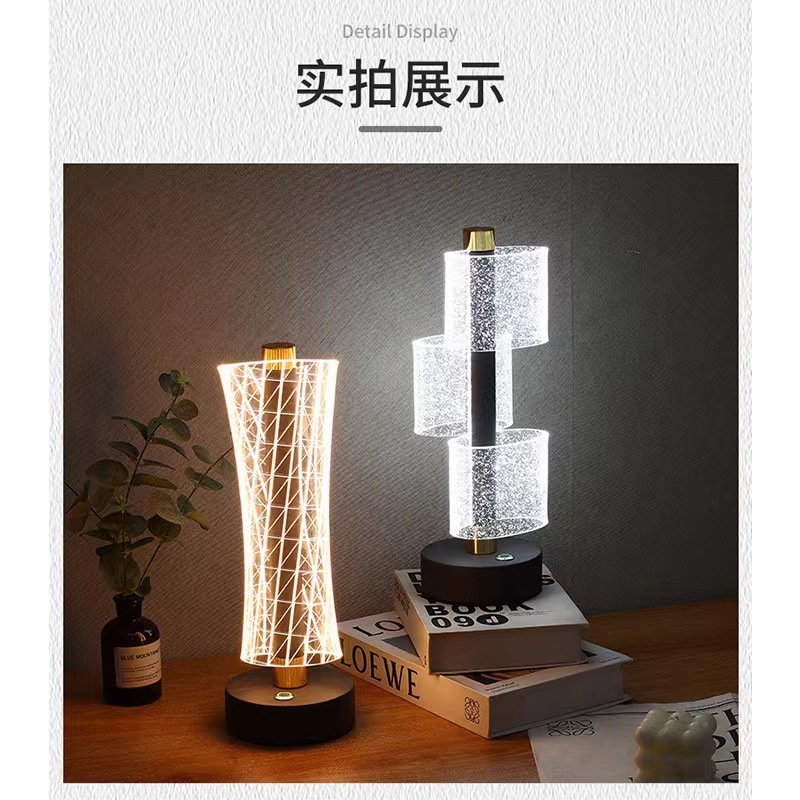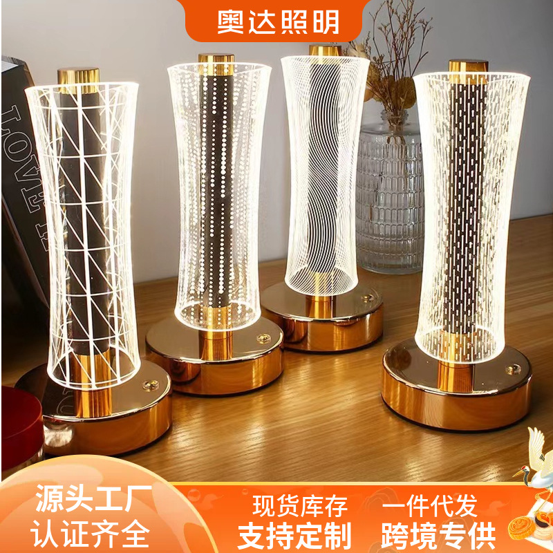 패턴 작은 허리 테이블 램프 아크릴 금속베이스 침실 거실 연구 테이블 램프 북유럽 창조적 인 디자인 야간 조명