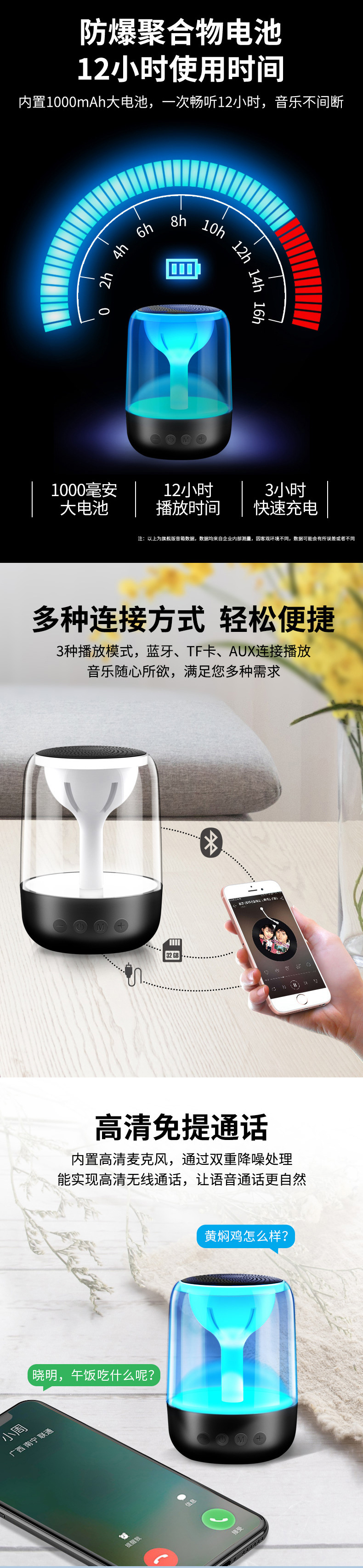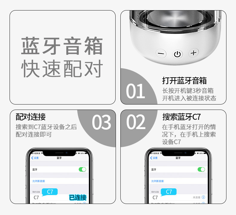 Yayunshi C7 무선 블루투스 스피커 서브우퍼 휴대용 다채로운 조명 자동차 크리스탈 유리 크로스보더 이베이