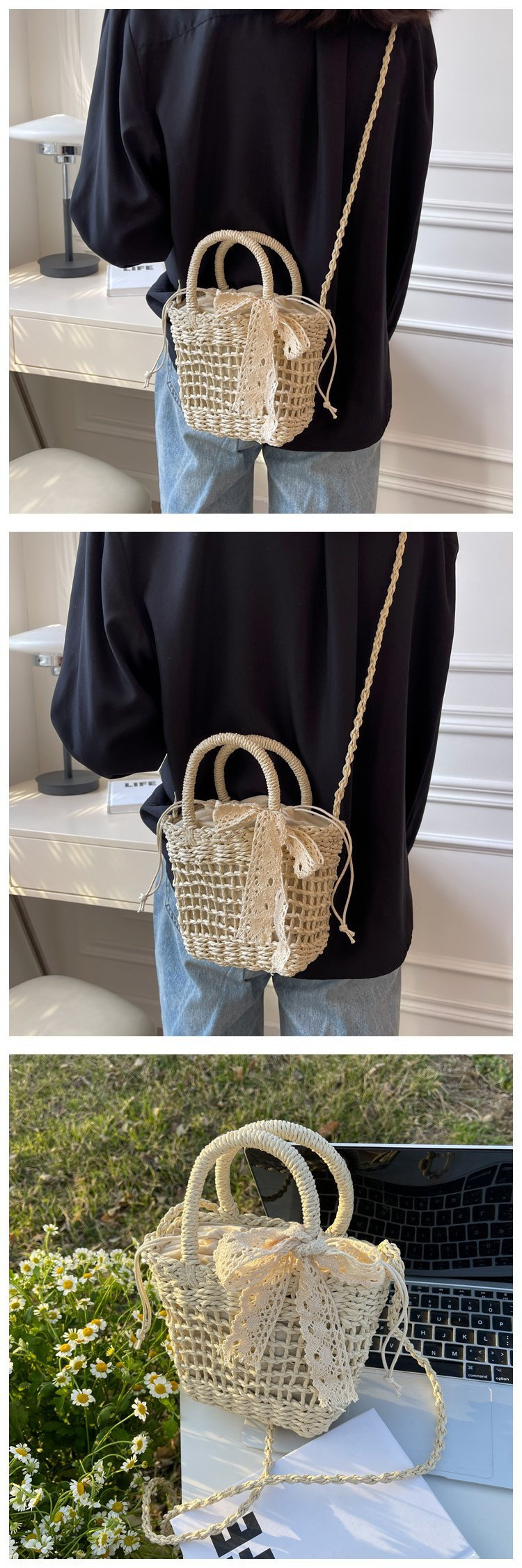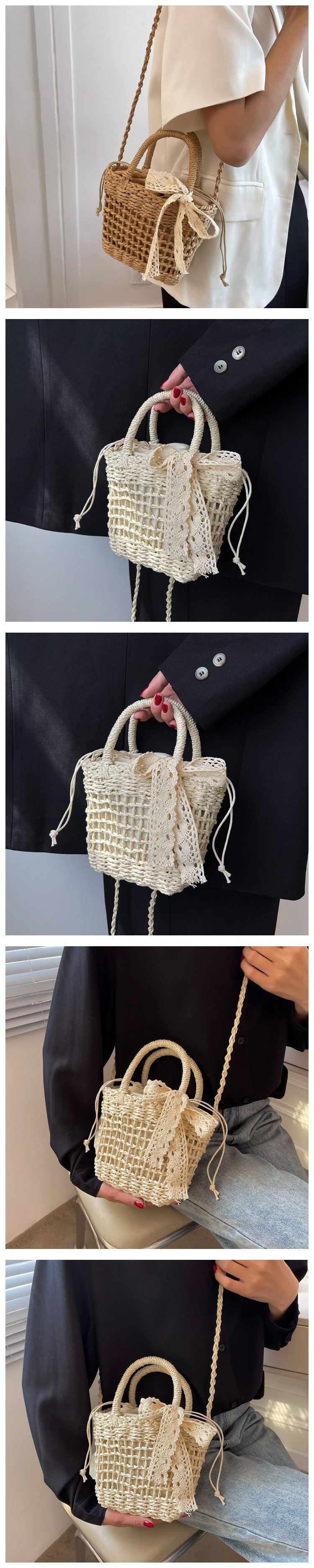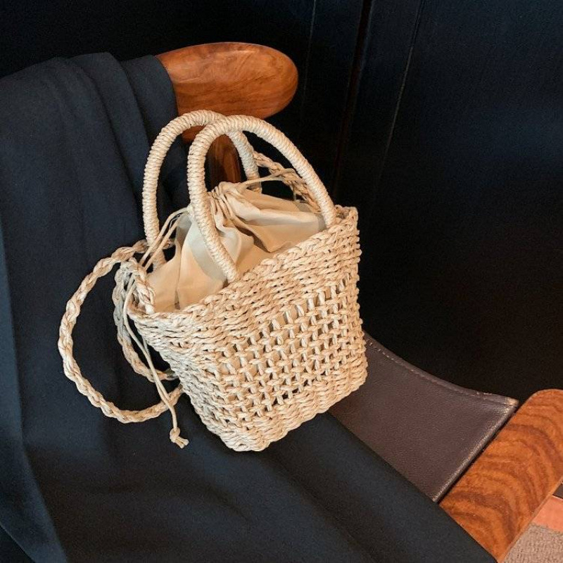 여름 짠 가방 여성 가방 새로운 유행 틈새 디자인 크로스 바디 가방 짠 휴대용 야채 바구니 버킷 백