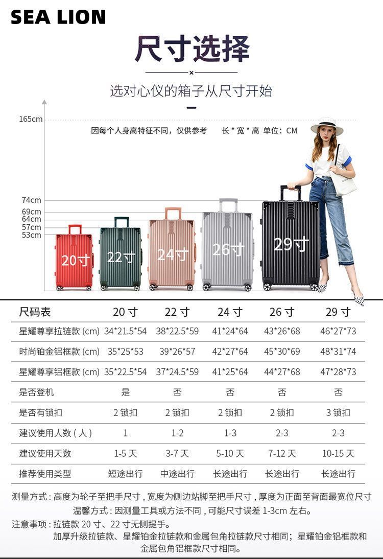 [SF Express] 남성용 여행가방, 여학생용 트롤리 케이스, 대용량, 튼튼하고 내구성이 뛰어난 두꺼운 여행용 비밀번호 가죽 케이스