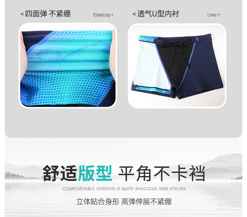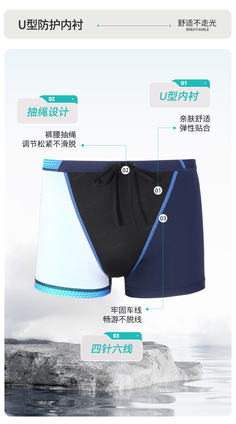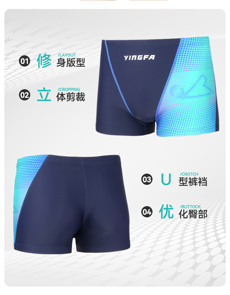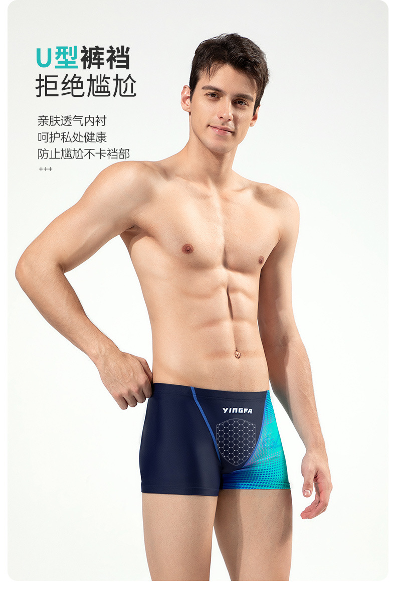 Yingfa Yingfa 새로운 남성용 복서 팬티 컬러 매칭 고탄성 전문 스포츠 당황 방지 속건성 염소 방지 수영 팬티스토어 가기