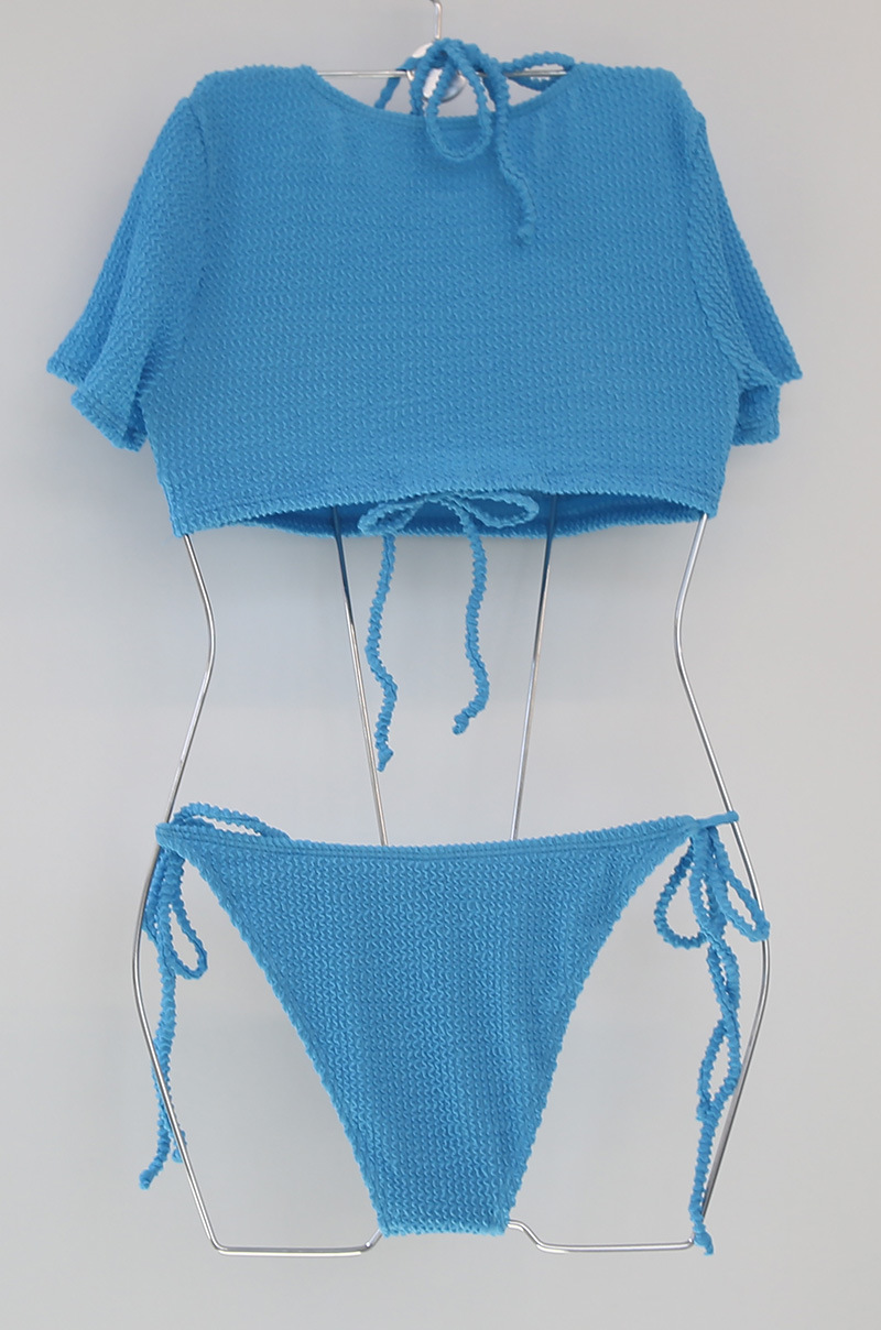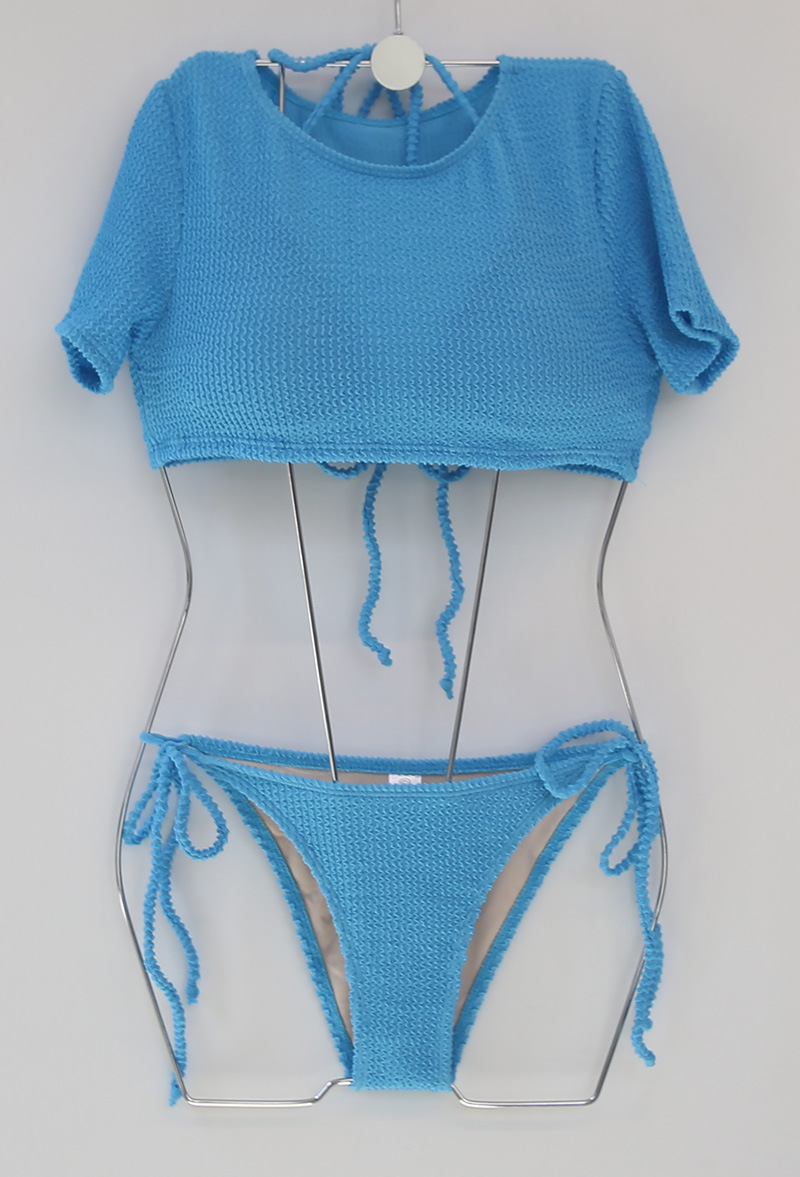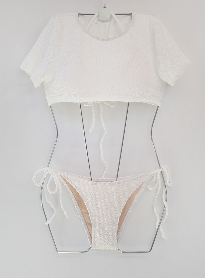 크로스보더 스플릿 수영복 여성 비키니 3피스 한국 스타일 인 스타일 솔리드 컬러 섹시한 반팔 블라우스 스플릿 수영복스토어 가기