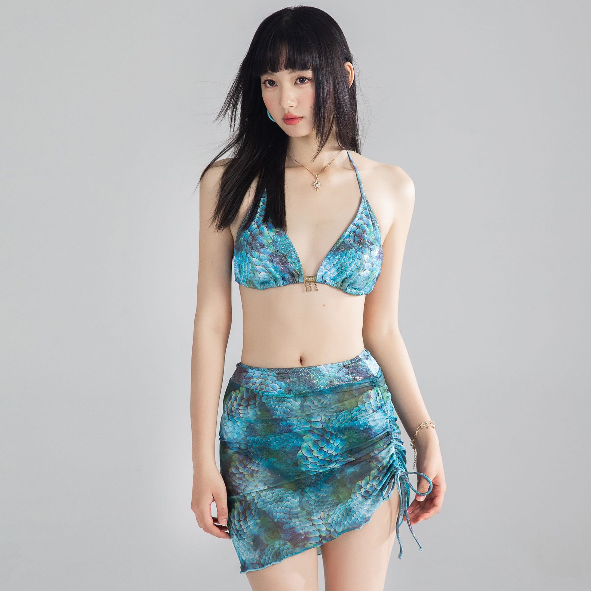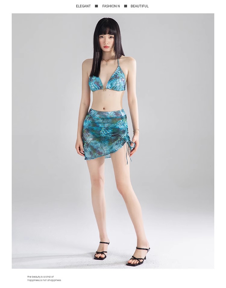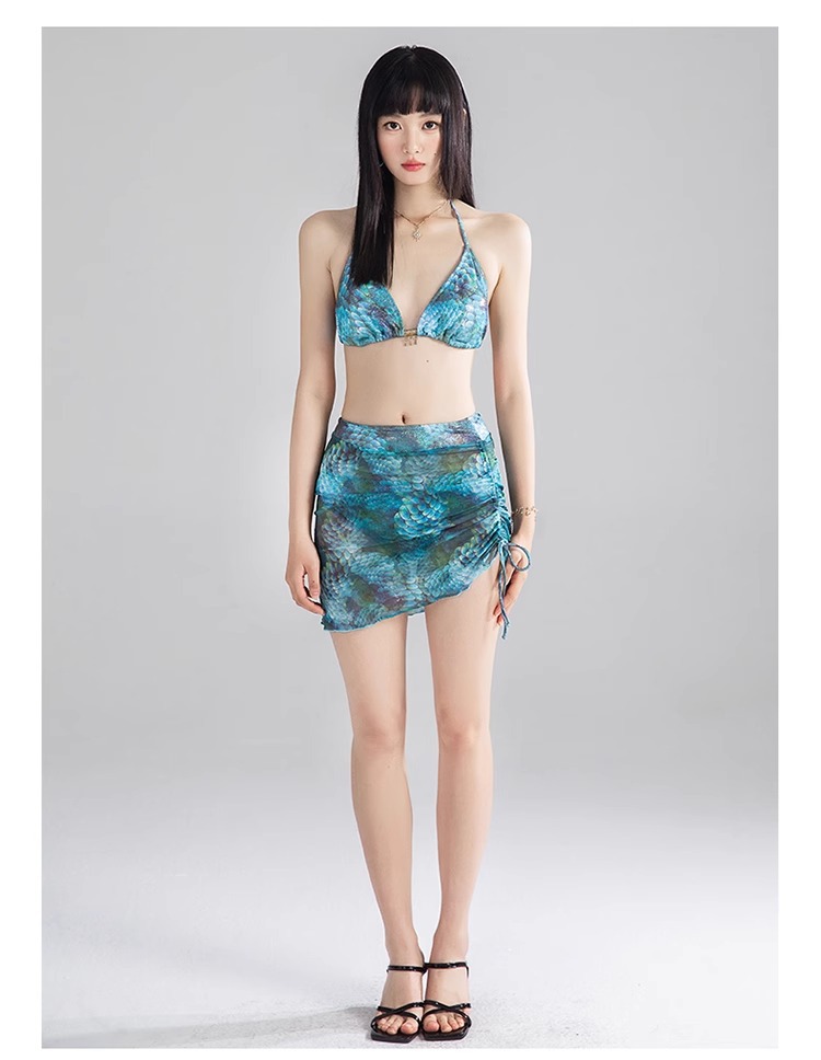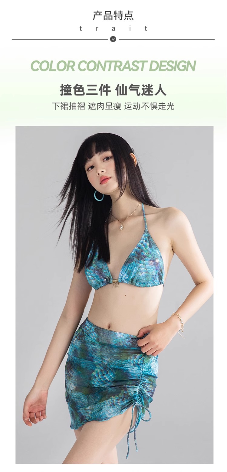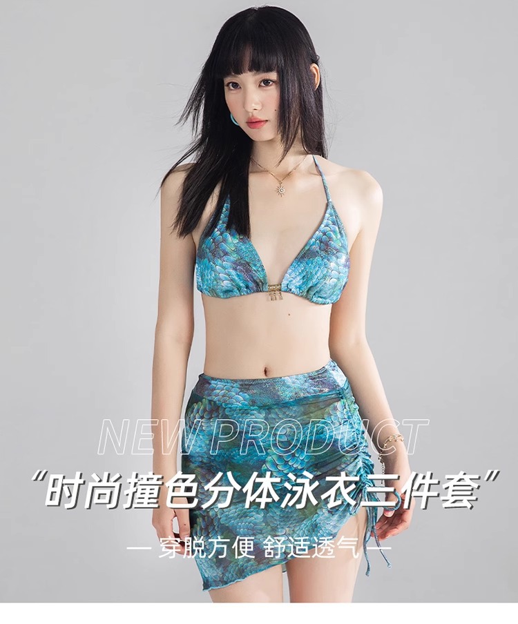 비키니 수영복 여성 2025 새로운 섹시한 순수한 욕망 해변 해변 휴가 스플릿 3 피스 온천 수영복