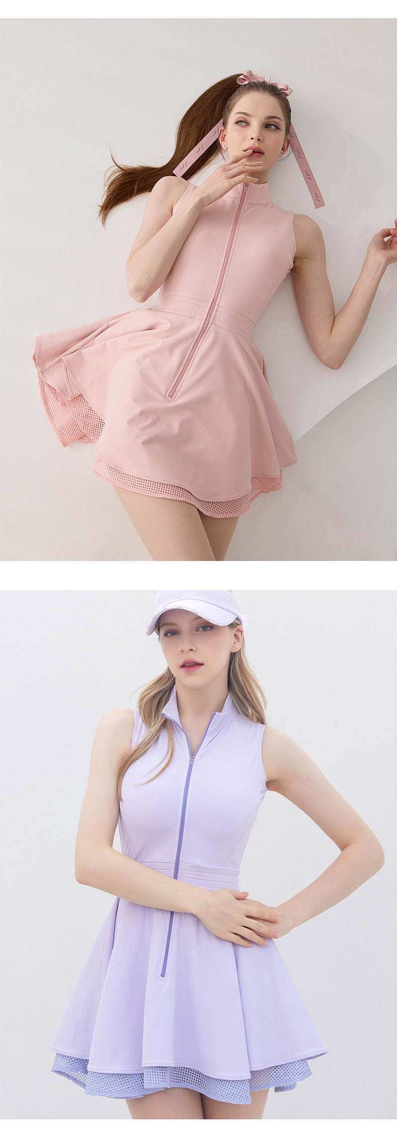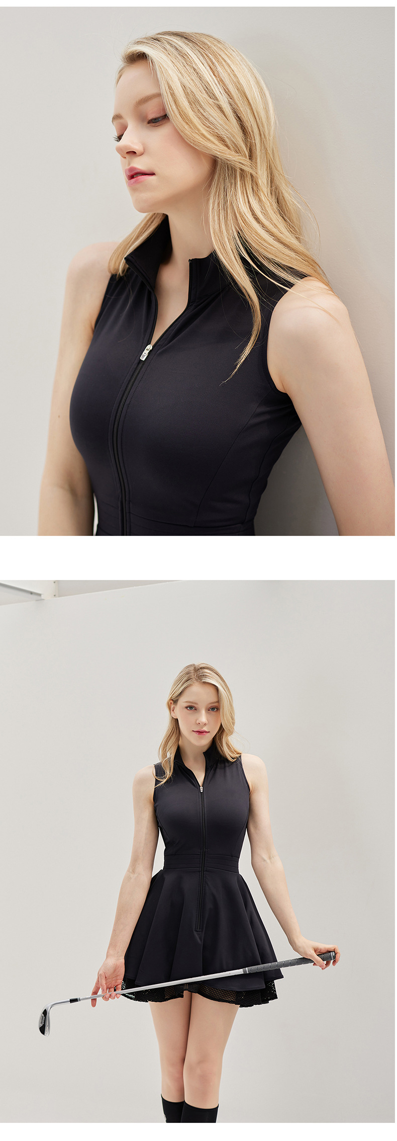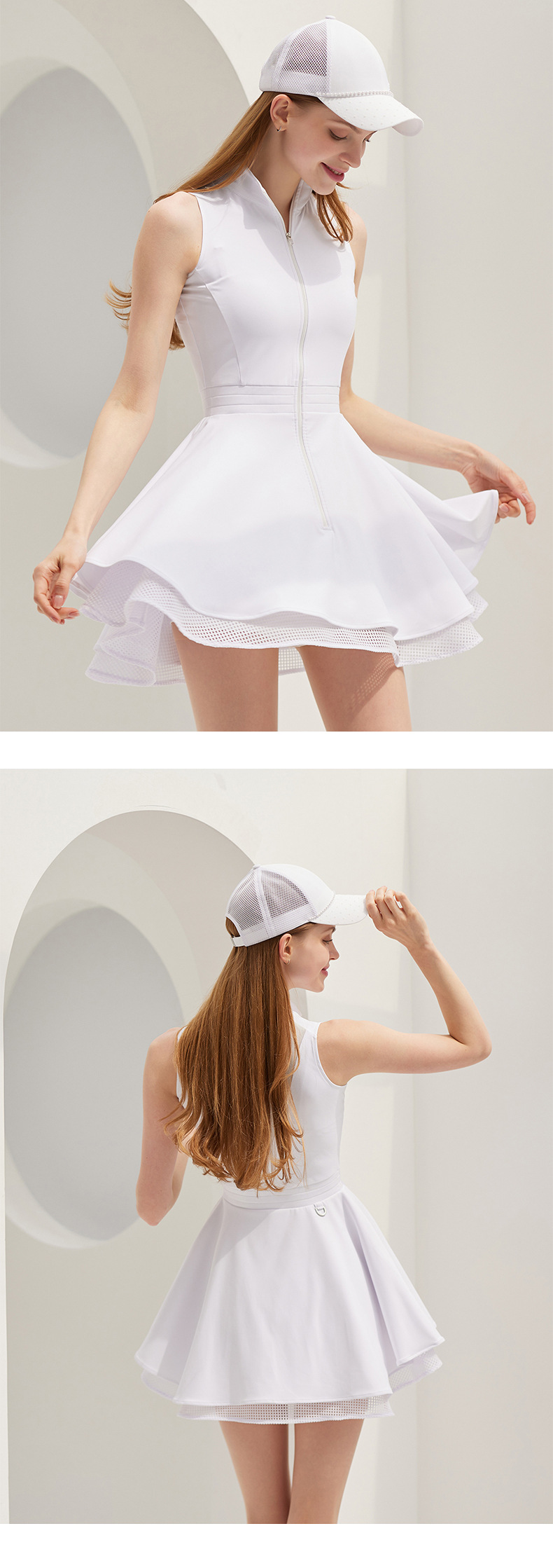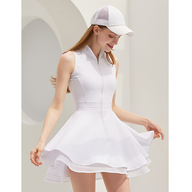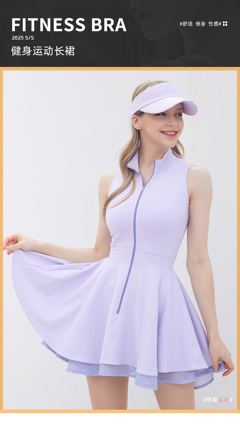 유럽과 미국의 국경 간 봄과 여름 새로운 캐주얼 스포츠 피트니스 요가 의류 정장 민소매 뒷면 중공 테니스 드레스