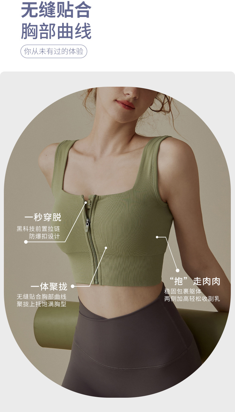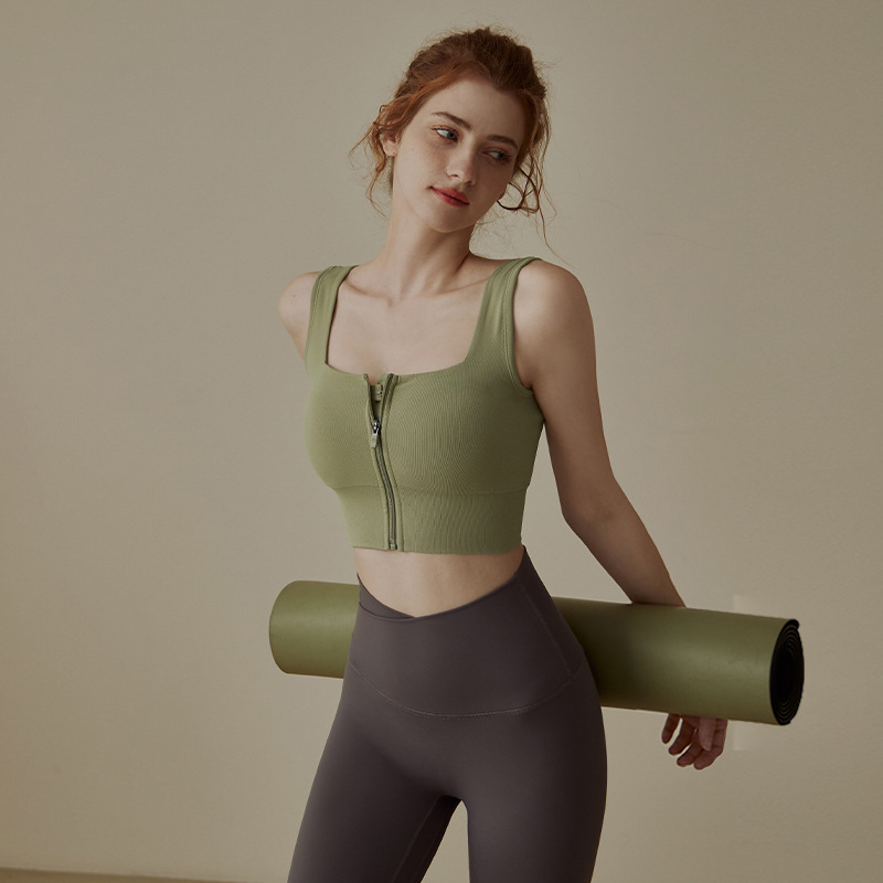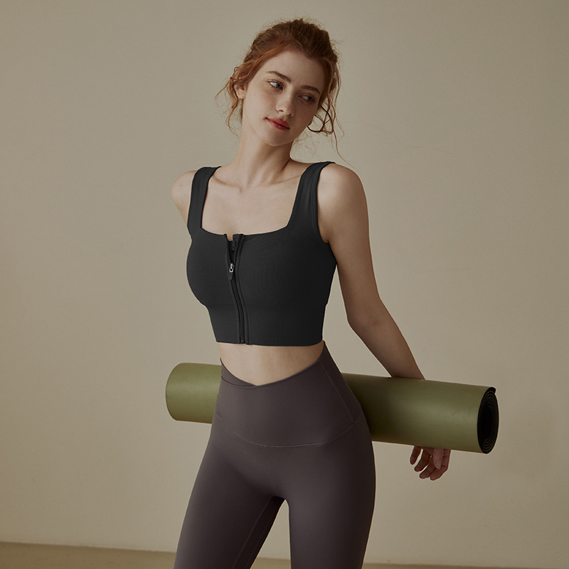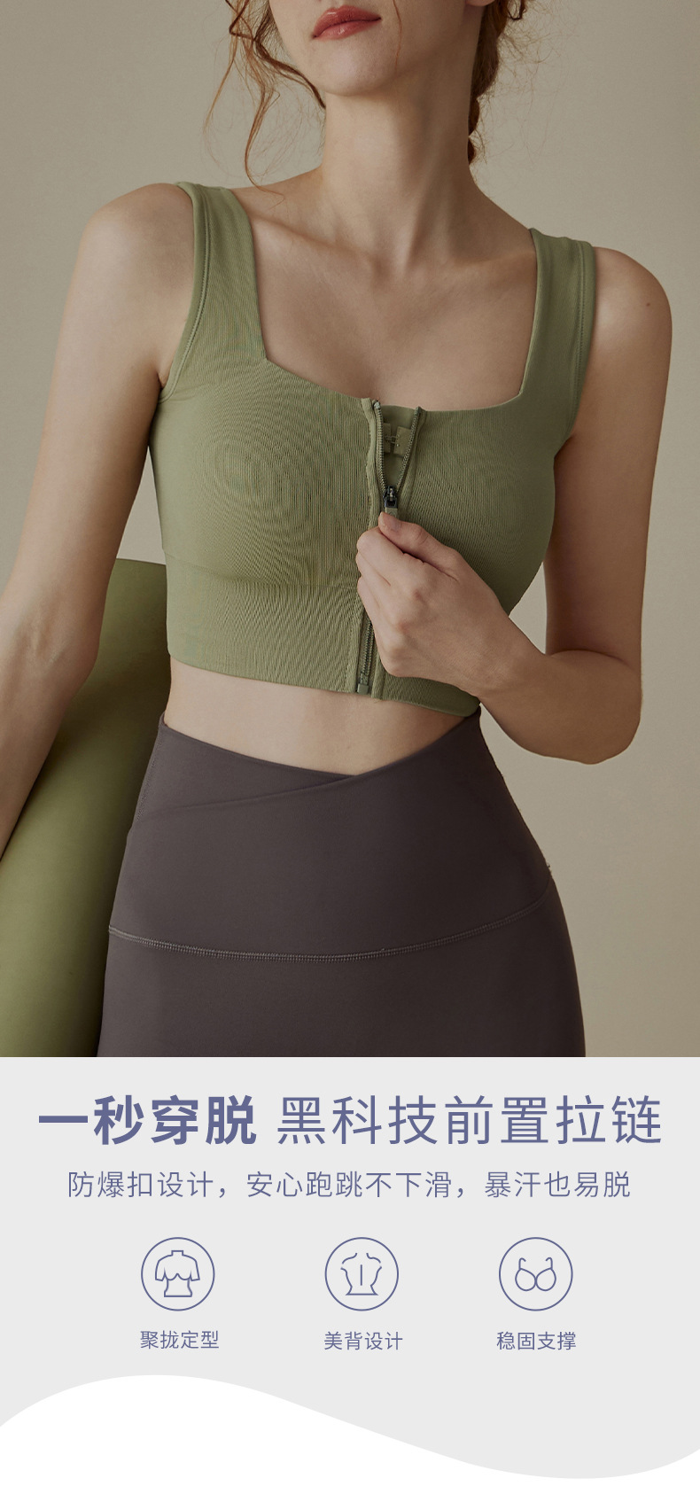 여성용 전면 지퍼 고강도 스포츠 브라 러닝 충격 방지 피트니스 조끼 브라 필라테스 트레이닝 요가 브라