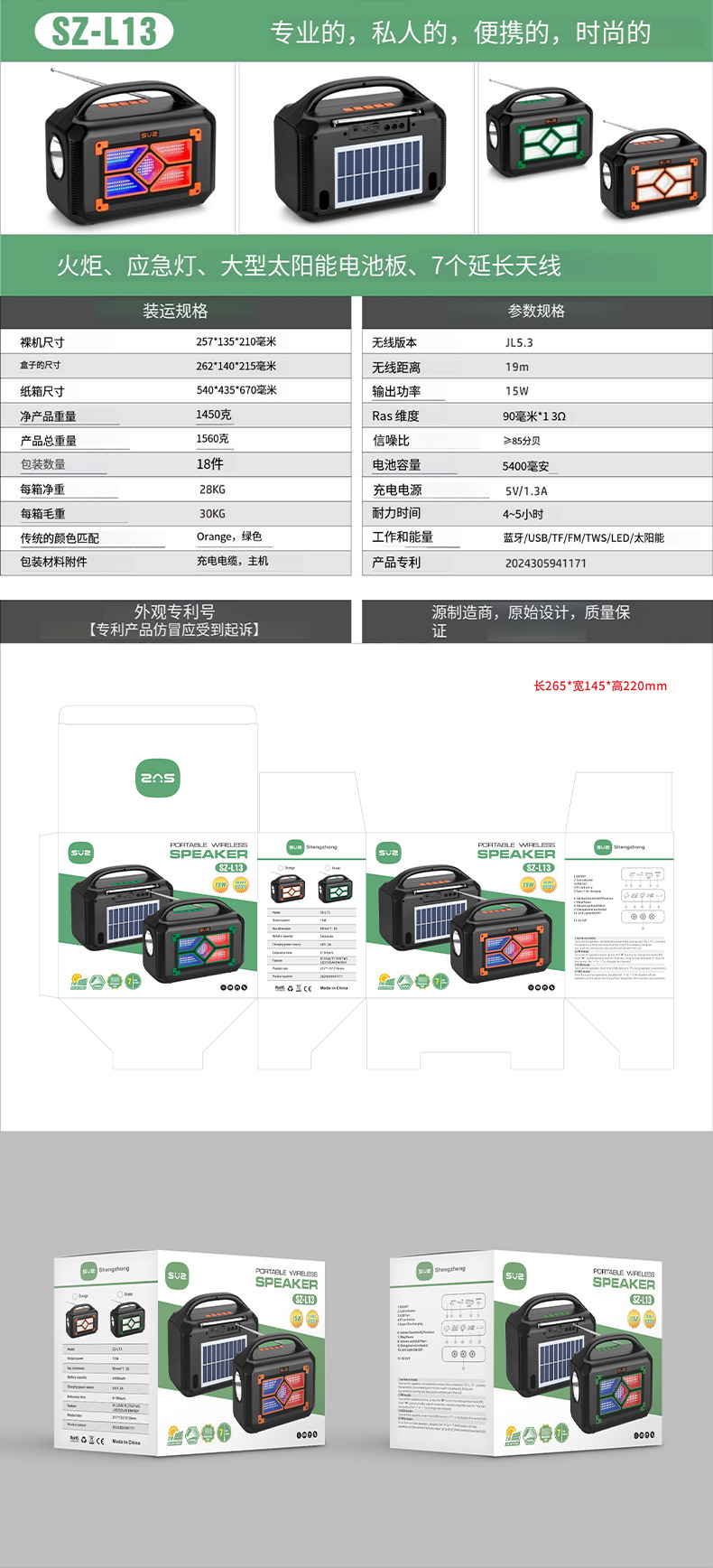 새로운 블루투스 오디오 대용량 서브 우퍼 SZ-L13 충전식 휴대용 오디오 야외 방수 소형 스피커