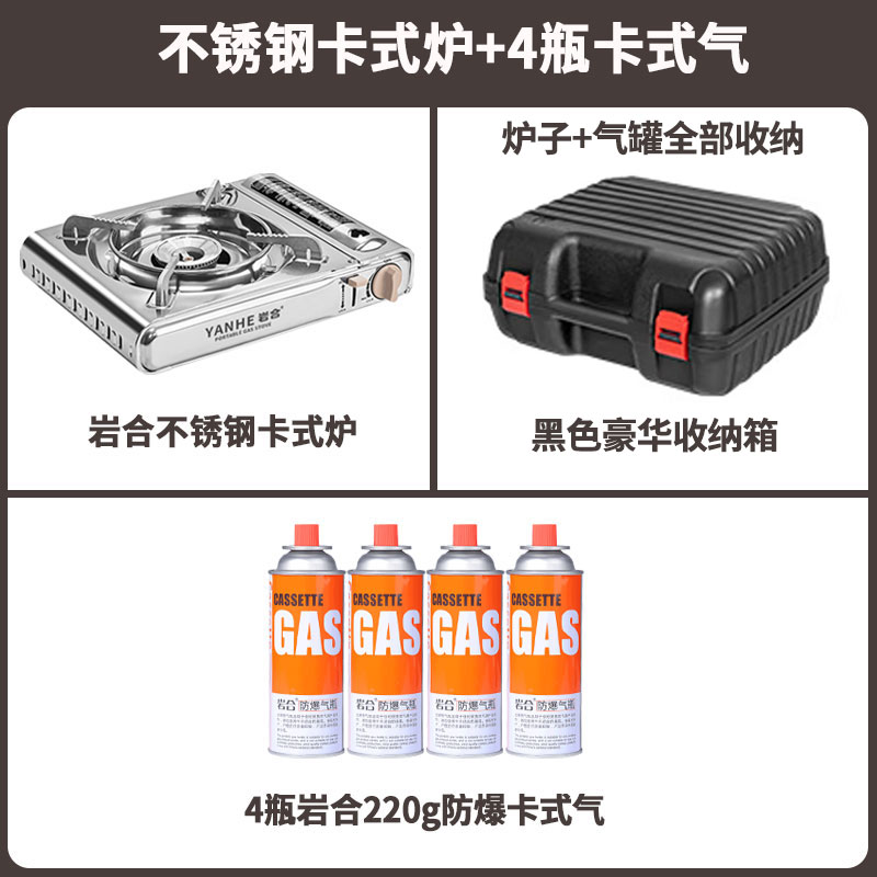 • Yanhe 스테인레스 스틸 카세트 스토브 + 카세트 가스 4병 + 블랙 럭셔리 풀 수납 상자