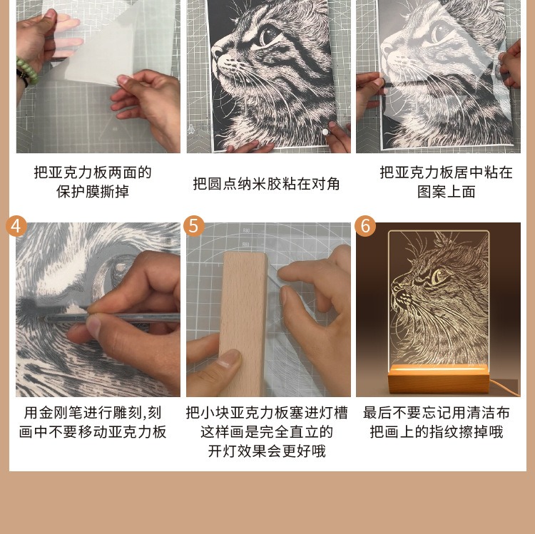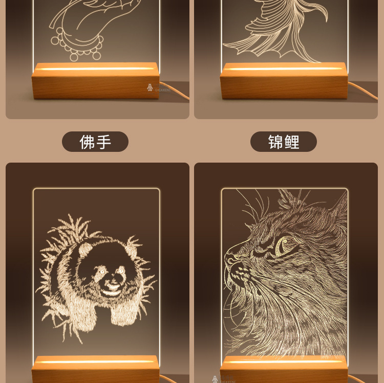 어린이와 학생을위한 아크릴 조각 야간 조명 친구를위한 DIY 그림 스케치 크리 에이 티브 조명 빛나는 그림 장식품스토어 가기